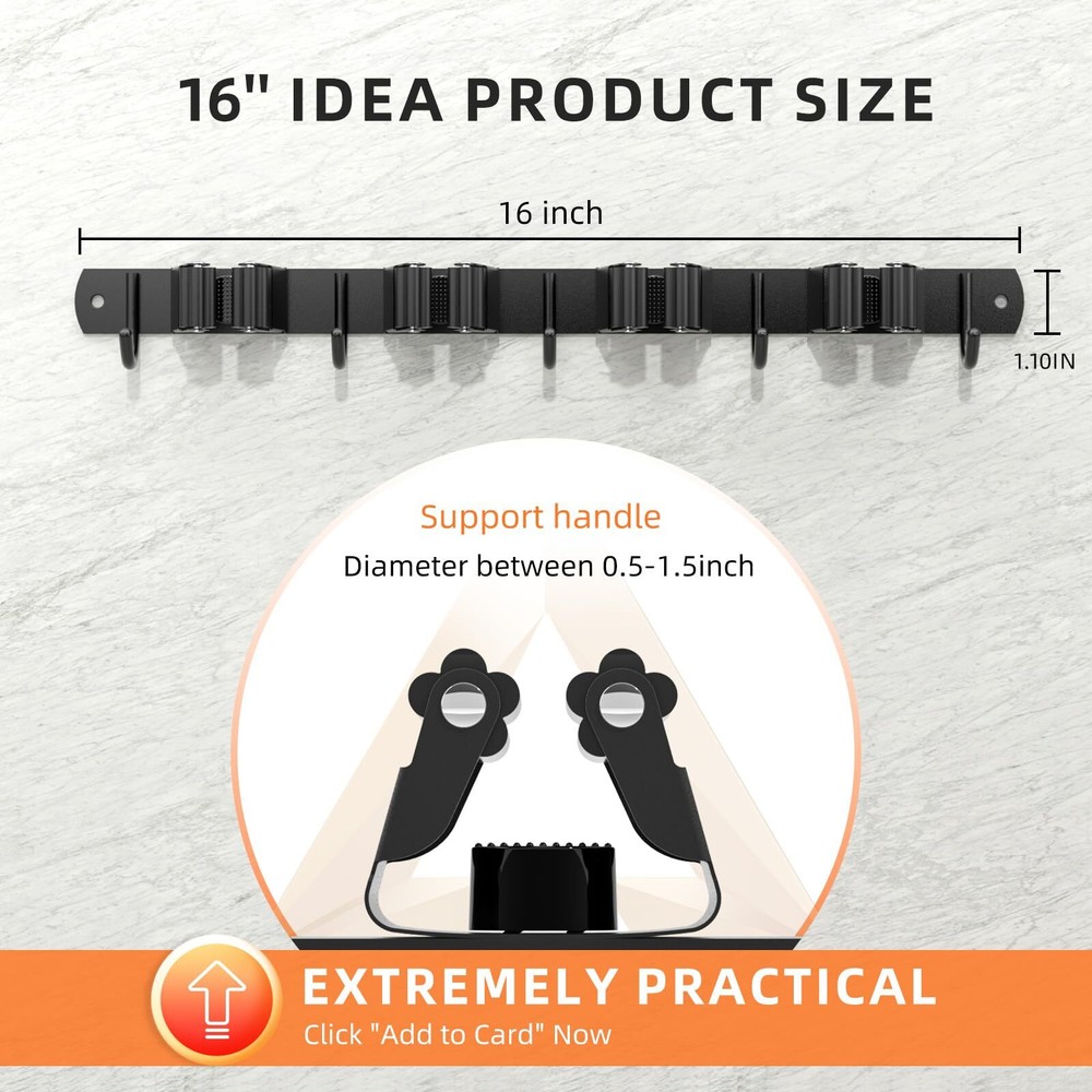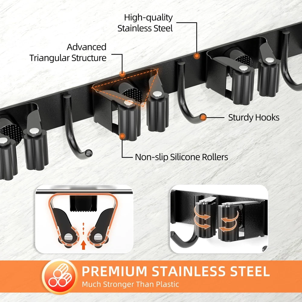 Improved Non-Slip Broom Holder Wall Mount 2 Pack for Brooms, Mops, and Cleaning Tools