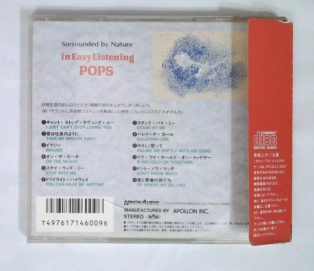 1 キャント・ストップ・ラヴィング・ユー / I Just Can't Stop Loving You 3:37 2 愛は吐息のように / Take My Breath Away 2:59 3 イマジン / Imagine 4:38 4 オン・ザ・ビーチ / On The Beach 5:03 5 ステイ・ウィズ・ミー / Stay With Me 4:03 6 トワイライト・ハイウェイ / You Can Have Me Anytime 5:02 7 スタンド・バイ・ミー / Stand By Me 3:37 8 バレリーナ・ガール / Ballerina Girl 4:37 9 やさしく歌って / Killing Me Softly With His Song 3:43 10 イフ・ウイ・ホールド・オン・トゥゲザー / If We Hold On Together 3:53 11 ドント・ノウ・マッチ / Don't Know Much 3:27 12 愛と青春の旅立ち / Up Where We Belong 5:39