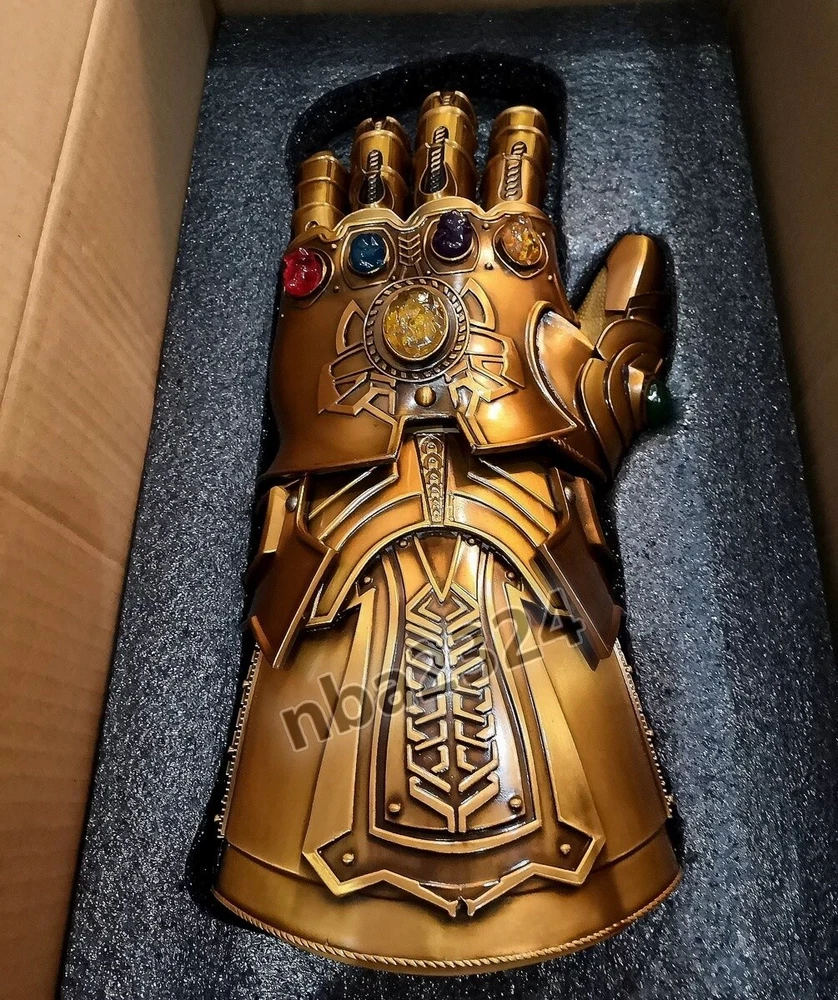 DESCRIPTION PAYMENT SHIPPING RETURN POLICY CONTACT US SECURE PAYMENT Payment We accept payment by any of the following methods: PayPal Please pay as soon as possible after winning an auction, as that will allow us to post your item to you sooner! Shipping In the very unlikely event that your item is lost or damaged during post, then WE are responsible and will issue either a full refund or replacement. Returns If you are not 100% satisfied with your purchase, you can return the product and get a full refund or exchange the product for another one, be it similar or not. You can return a product for up to 30 days from the date you purchased it. Any product you return must be in the same condition you received it and in the original packaging. Please keep the receipt. In Stock Thanos Infinity Gauntlet 1:1 Scale Full Metal Wearable Marvel Avengers PACKAGE INCLUDED: In Stock Thanos Infinity Gauntlet 1:1 Scale Full Metal Wearable Marvel Avengers DESCRIPTION: HCMY 2018 Production - Thanos Infinity Gauntlet Material: External armor made of alloy, internal silicone lining The length from arm to fingertip is approximately 40CM Joint mobility, wearable Gift display stand, vertically placed at a height of approximately 45CM Unlimited gloves with a net weight of approximately 2.5 kilograms Contact Us Email: Please Use E-Bay's E-mail System We will try our best to get to you as soon as we can!
