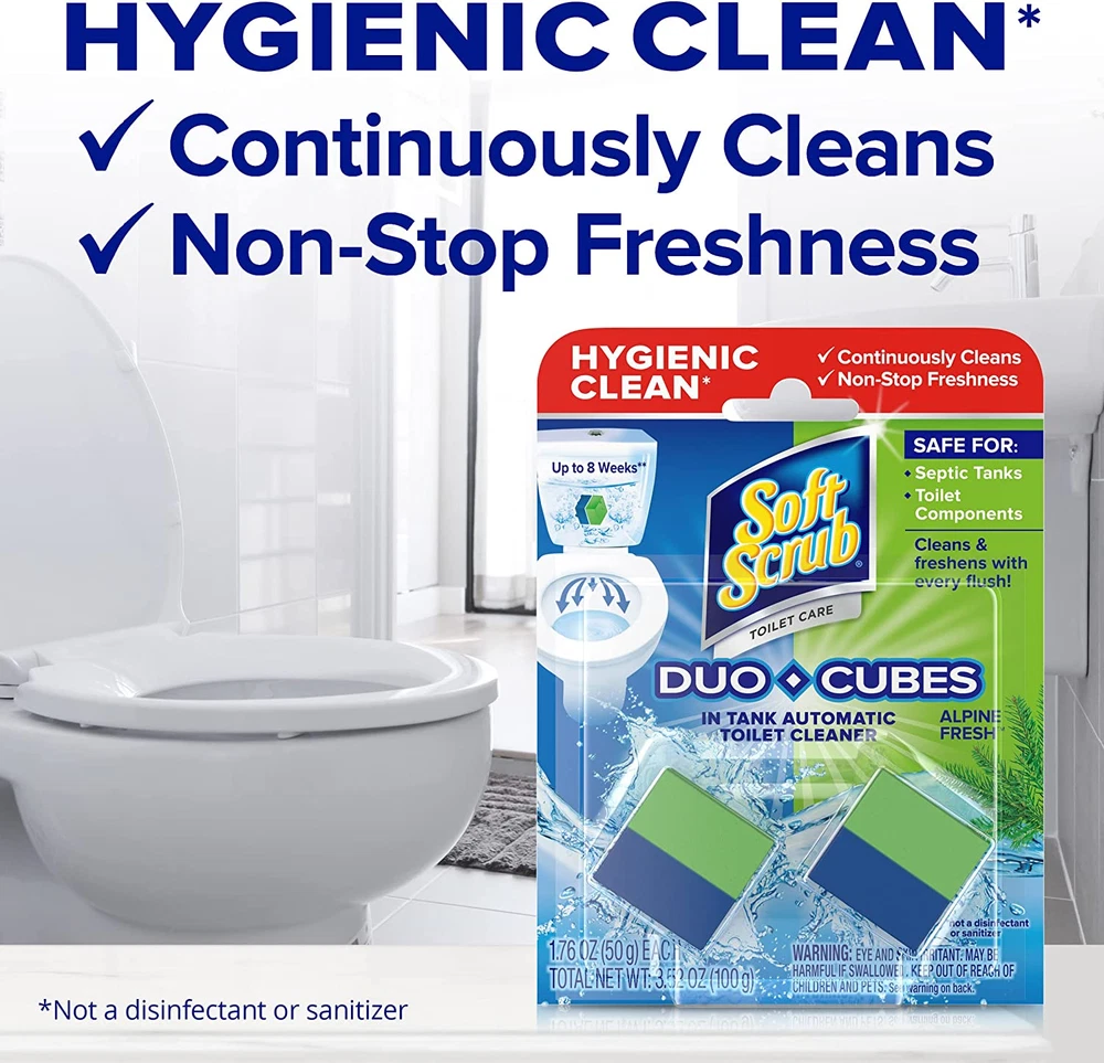 Store New Arrivals Add to Favorite View Feedback Contact In-Tank Toilet Cleaner Duo-Cubes, Alpine Fresh, 4Count Description Item model number 2416977 Item Form Liquid Product Dimensions 1.3 x 5 x 6.69 inches; 0.02 ounces Country of Origin Poland Material Feature Scented Scent Alpine Fresh Specific Uses For Product Toilet Helps fight toilet ring, hard water, and limescale stains. Safe for toilet components. Easy to use. Each duo cube cleans up to 4 weeks. This package contains 4 Duo-Cubes in Soft Scrub Alpine fresh scent for a total of 16 weeks of cleaning. Soft Scrub Duo-Cubes in-tank automatic toilet cleaner helps fight toilet ring, hard water, and limescale stains. Soft Scrub Duo-Cubes are easy to use and safe for toilet components. Just drop a Soft Scrub Duo-Cube in the tank and enjoy cleaning and freshening benefits for up to four weeks! ABOUT US We offer the best prices around on high quality products. Our E-store includes media such as books, movies, music and games while offering electronics, toys, sporting apparel, clothing, tools, general home, garden items and more. SHIPPING We are always working hard to ensure your package arrives as soon as possible. Please understand that some factors like weather, high postal traffic, and the performance of shipping companies are outside of our control. We offer free shipping to the lower 48 states and ship within 2 business days of payment, usually sooner. We do not accept P.O. Boxes. Please provide a physical address. For shipping outside of the continental USA, we only use eBay's Global Shipping Program.The item is shipped to KY and then sent to the rest of the world. International customers are responsible for all duties and taxes. Continue to check out in order to calculate costs for shipping the item to your country. Messages regarding eBay's Global Shipping Program MUST be directed at eBay EXCLUSIVELY. RETURNS We offer a 30-Day Return Policy on items which you are not completely satisfied with. You have the option for a full-refund or an exchange of the item. No returns are available on items shipped outside of the USA. PAYMENT We accept PayPal. CONTACT US This page content is yet to come Please ad us to your favorite seller and visit again later Thank You CUSTOMER SATISFACTION We try our very best to make sure every customer is completely satisfied. If there's a problem, message us! We're happy to help. WE ACCEPT Copyright © 2021 AutoDS. | All Rights Reserved