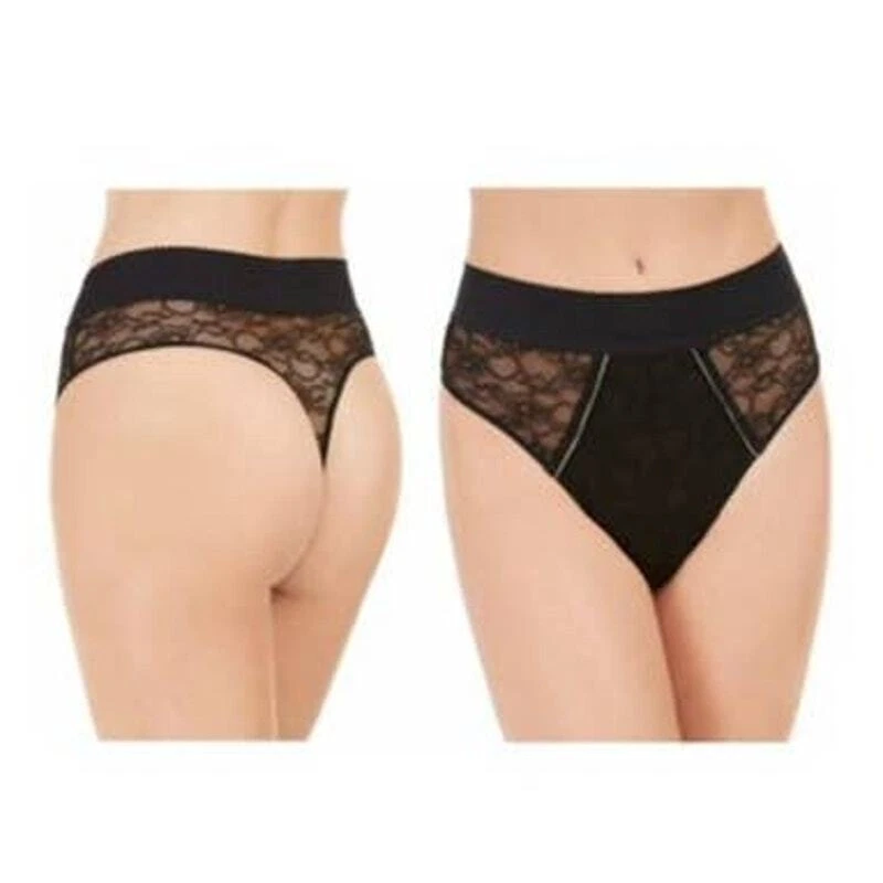 Inc International Concepts Women's Lace High-waist Thong Underwear Size: Small Color: Black pretty allover lace, wide elastic waistband, high-waist thong Coverage: Thong; little to no back coverage Wide, elastic waistband Lined panel at front Cotton Gusset Nylon/spandex Machine washable New with tags. Paper hang tag may be torn or have tape or stickers attached/detached Inv: I103