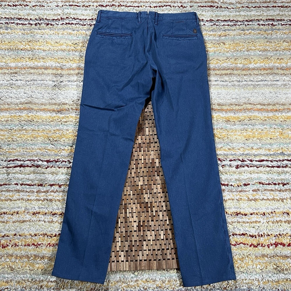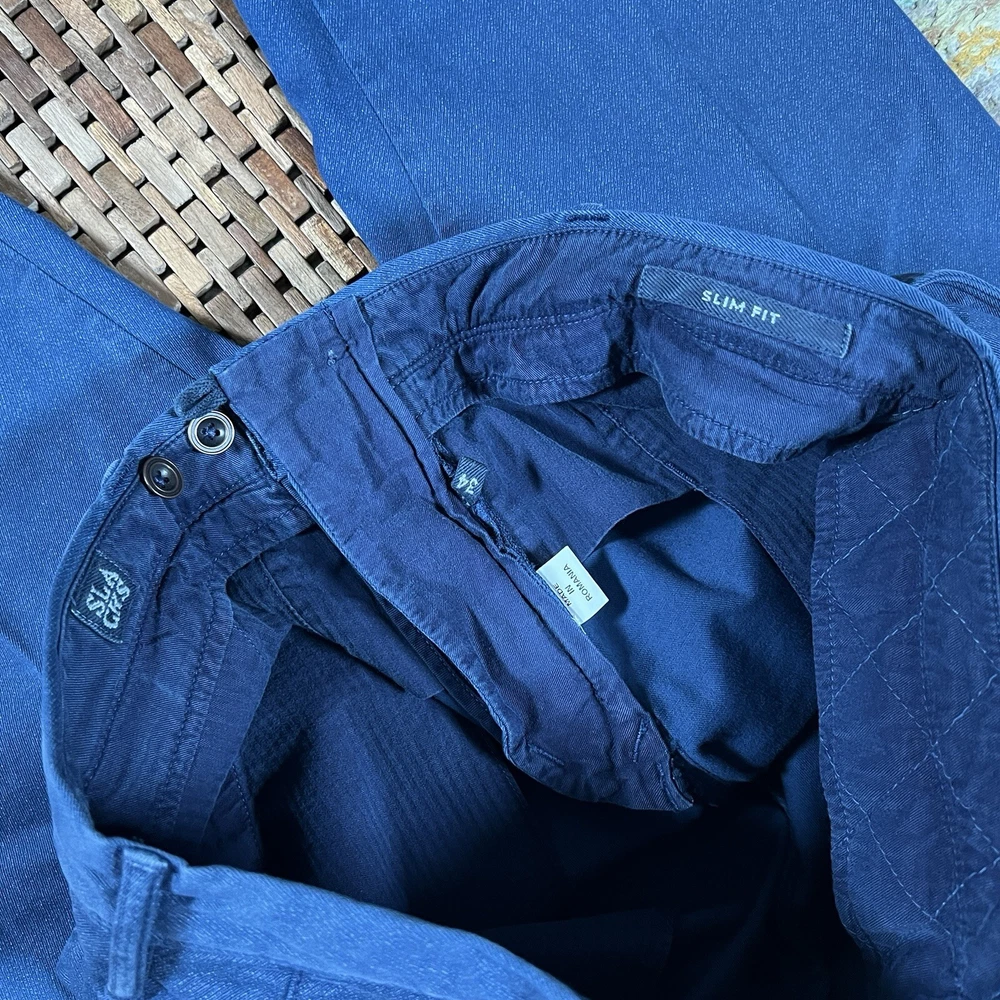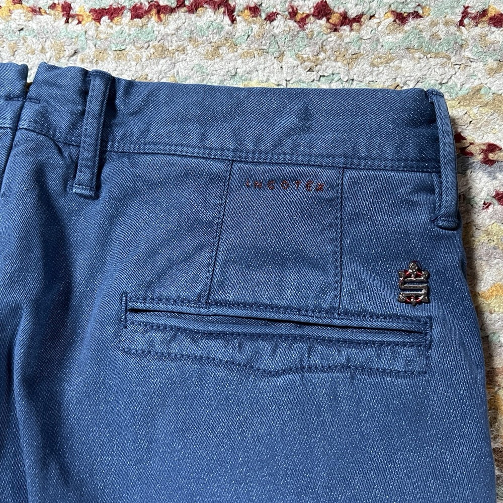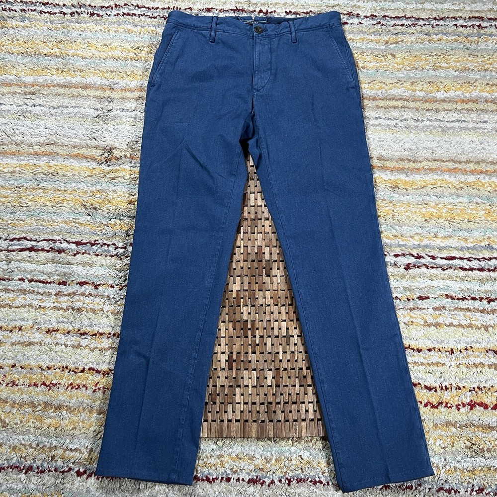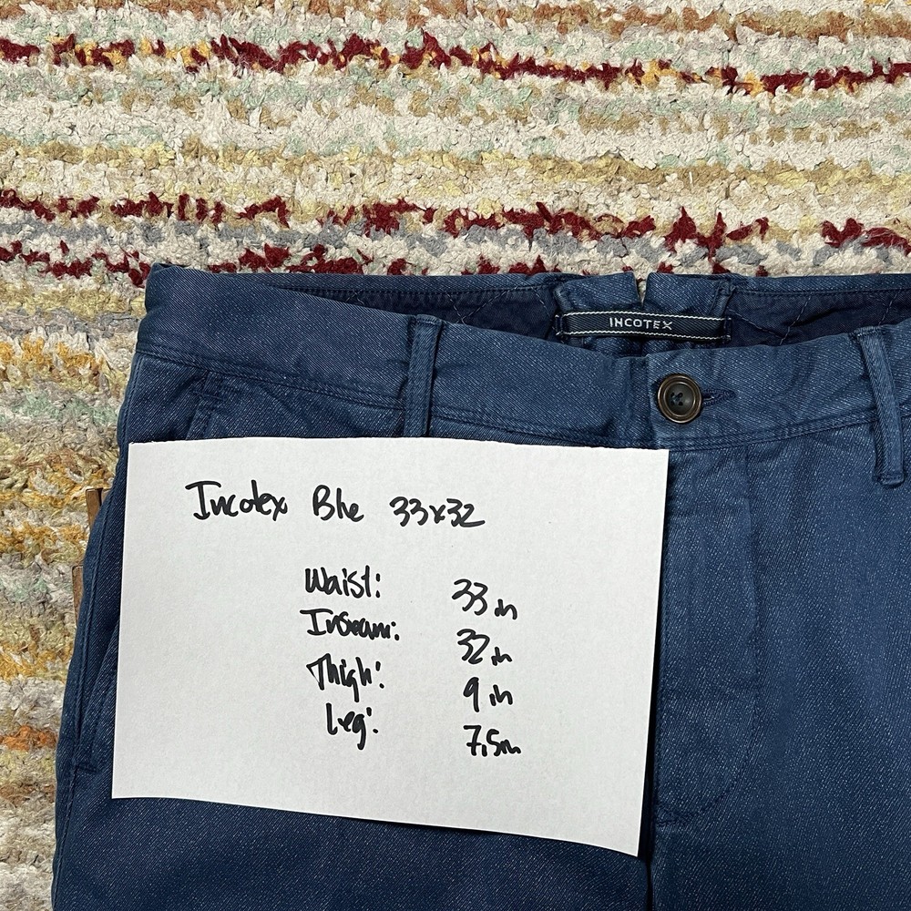 Elevate your wardrobe with these stylish Incotex Slowear chino pants in a sleek indigo blue. The slim fit design is perfect for a modern, tailored look and the flat front adds a touch of sophistication. These pants are made from high-quality materials and features slimming properties for a flattering fit. Ideal for any occasion, these pants have a 33-inch inseam and are designed for regular size types. The brand INCOTEX is renowned for its quality and style, making these chinos a must-have for any fashion-conscious individual. Don't miss out on the opportunity to add these stunning pants to your collection. Tagged as a 34. Hand measured to be 33x33.