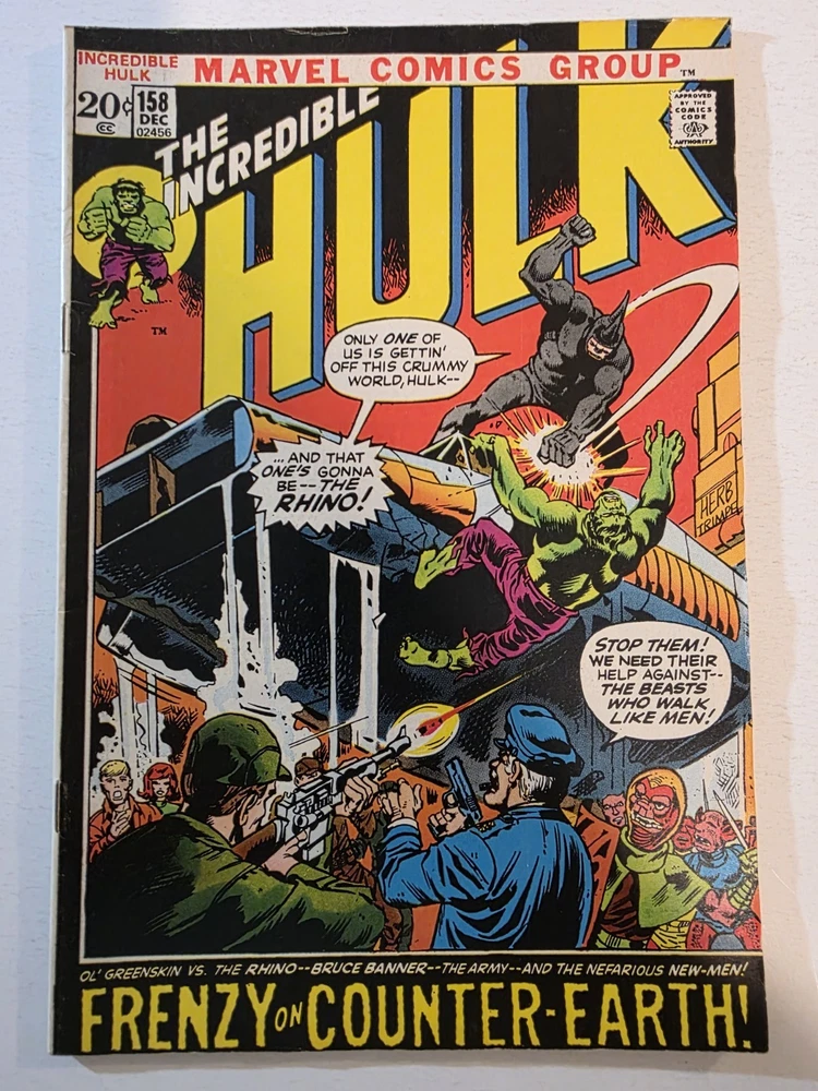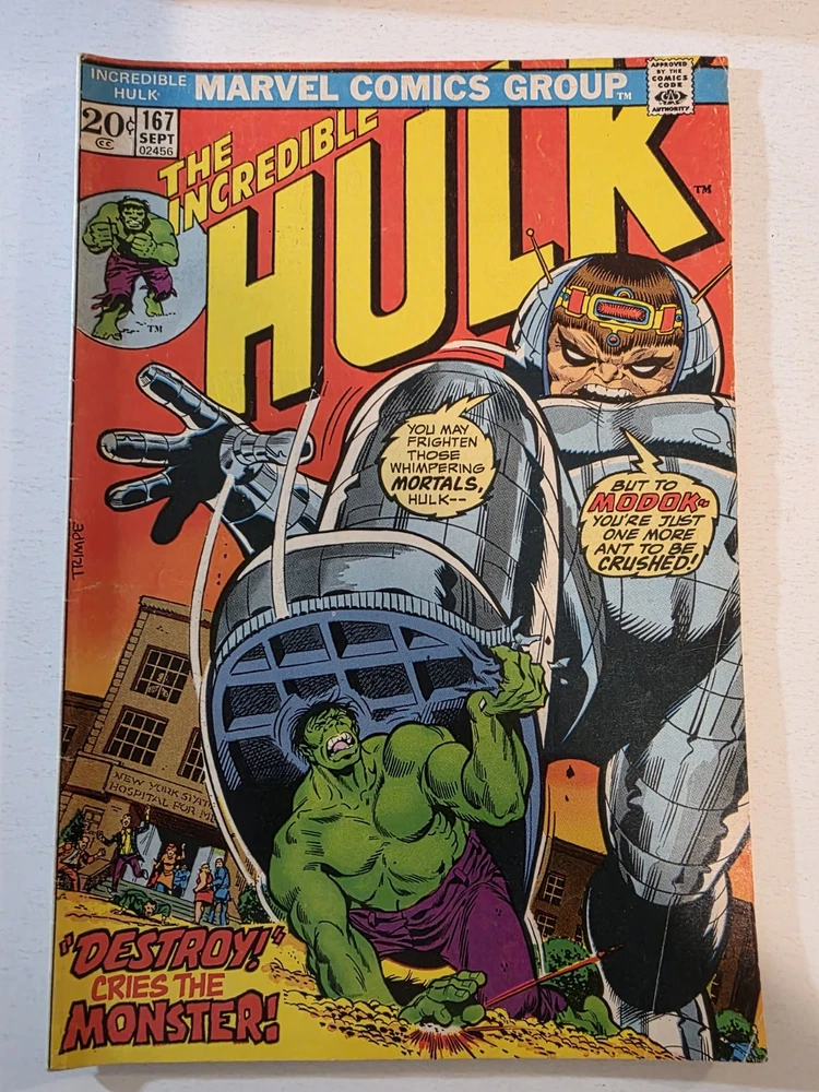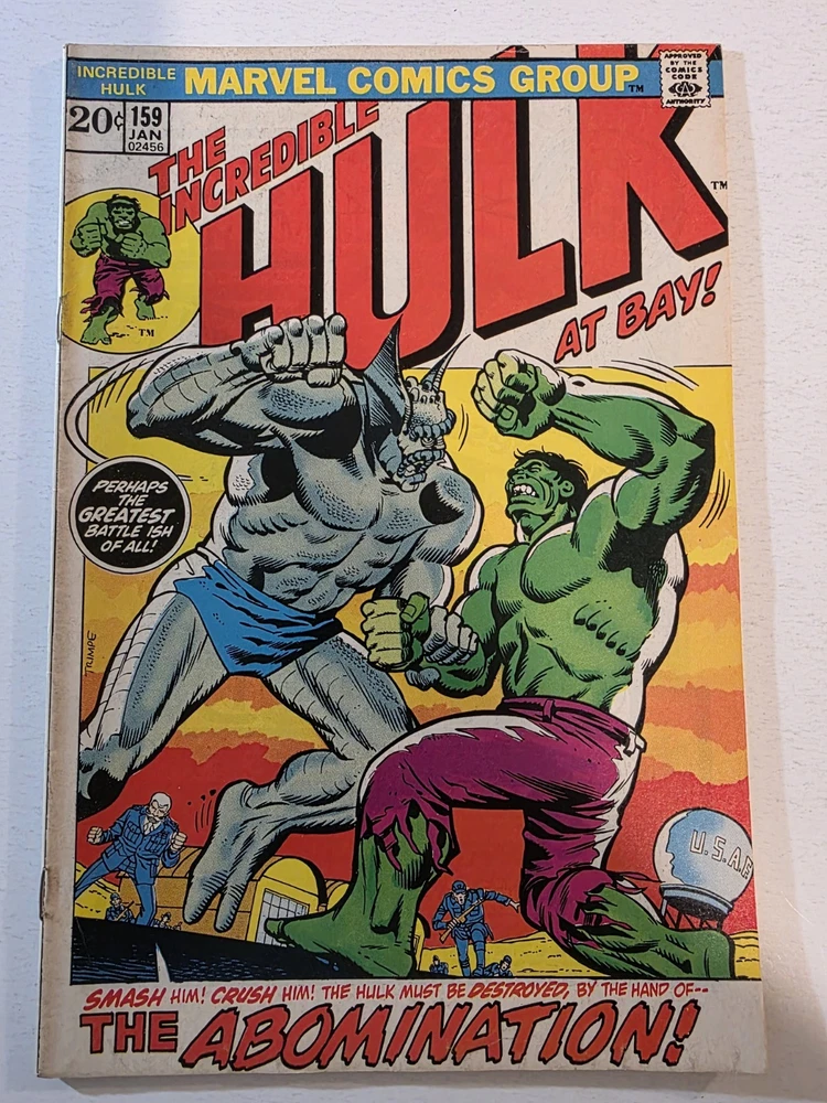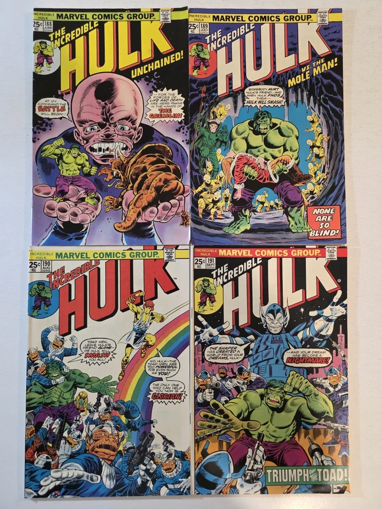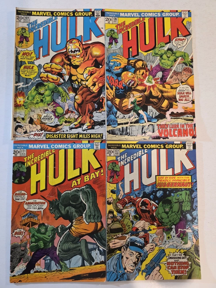 This product is a lot of 45 Incredible Hulk comic books from the Silver Bronze Age, spanning issues #151-200*. The comics feature characters such as Hulk (Bruce Banner), Betty Ross, Dr. Doom, Iron Man (Tony Stark), and more from the Marvel Universe. With artwork by Herb Trimpe, these vintage comics are in Near Mint-, Very Fine to FINE- condition and are published by Marvel Comics in the United States. This lot includes first appearances of characters like Galaxy Master, Barbara Norriss Valkyrie, and Jim Wilson, making it a valuable addition to any comic book collection for fans of action and superhero genre. *Includes #151 VF- #152 VF- #153 VF+ #154 BF/NM #155 VF 1st Appearance of Shaper #156 VF-1st Appearance of Krylar #157 VF #158 VF #159 VF- Abomination Appearance #160 VF Tiger Shark Appearance #161 VF- #163 VF- #164 VF 1st Appearance of Captain Omen #165 FN 1st Appearance of Aquon #166 VF #167 FN+ MODOK Appearance #168 VG/FN #169 FN+ 1st Appearance of Bi-Beast #170 FN/VF #171 FN- Abomination #172 VG+ 2" tear top spine #173 VF #174 VF 1st Cobalt Man MVS Green Goblin #175 VF+ MVS RAWHIDE KID #176 VF- MVS CYCLOPS #177 FN/VF MVS IRONFIST #178 FN+ Death of Warlock #179 VF- MVS SHANG CHI #183 VF Living Dynamo App MVS THING #184 VF+ #185 VF+ #186 VF 1st App Devistator MVS Deathlock #187 VF+ #188 VF+ #189 VF/NM #190 NM- Glorian Appearance #191 NM- #192 NM- #193 VF/NM Doc Samson Appearance #194 VF #195 VF+ Abomination Appearance #196 VF+ #197 VF/NM Man-Thing Appearance #199 VF Annual #4 FN - ALL Complete, some spine wear and ticks, but interiors are stellar and staples intact, see pictures - Bagged and boarded - Shipped with Gemini packing to insure no damage during shipping - UPS ground Check out our 1000s of comics in our store We combine shipping