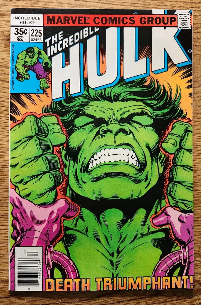 Series Title:HulkLanguage:EnglishFormat:SoftcoverInscribed:NoIssue Number:224,225Personalized:NoStory Title:The Hulk Is No More!Signed:NoType:Comic BookGenre:Action, Adventure, SuperheroesIntended Audience:General AudiencePublication Year:1978Universe:Marvel (MCU)Era:Bronze Age (1970-83)Artist/Writer:VariousCountry/Region of Manufacture:United StatesTradition:US ComicsCharacter:Hulk (Bruce Banner), The LeaderStyle:ColorCover Artist:VariousPublisher:Marvel ComicsVintage:YesFeatures:First Printing, 1st Edition, Boarded, Dust Jacket, Set, Vintage PaperbackGrade:8.0 Very Fine