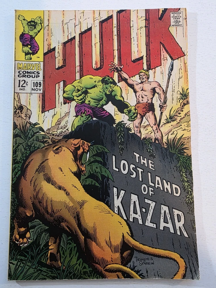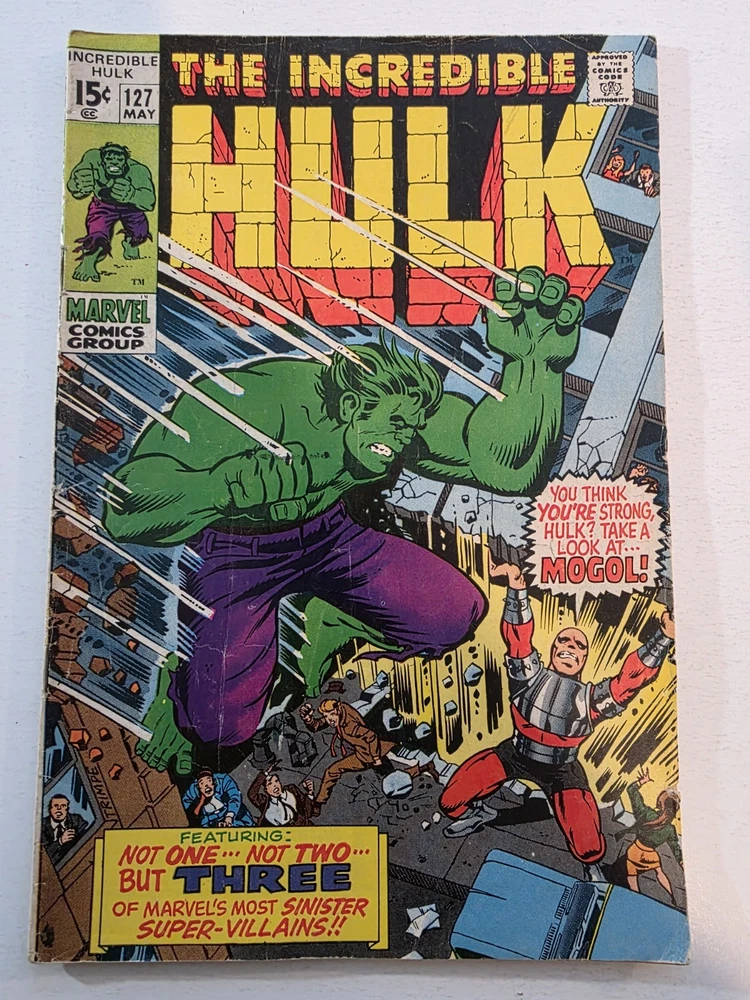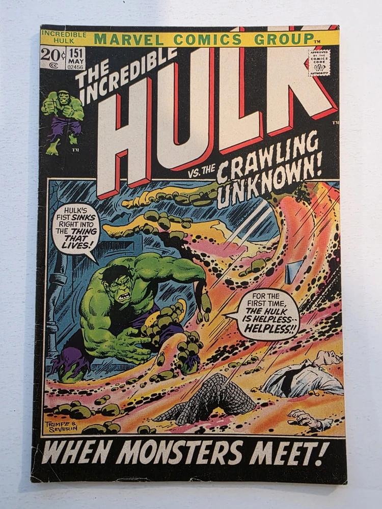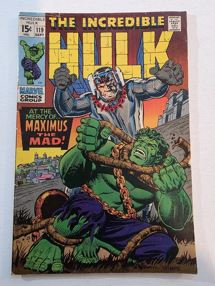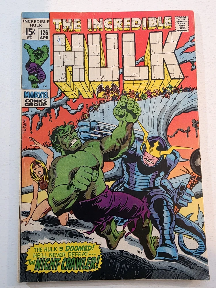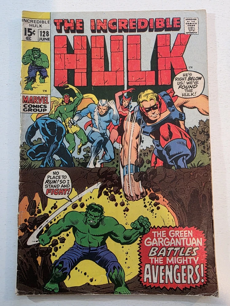 This product is a lot of 40 Incredible Hulk comic books from the Silver Bronze Age, spanning issues #104-151*. The comics feature characters such as Hulk (Bruce Banner), Betty Ross, Dr. Doom, Iron Man (Tony Stark), and more from the Marvel Universe. With artwork by Herb Trimpe, these vintage comics are in Fine to Very Fine+ condition and are published by Marvel Comics in the United States. This lot includes first appearances of characters like Galaxy Master, Barbara Norriss Valkyrie, and Jim Wilson, making it a valuable addition to any comic book collection for fans of action and superhero genre. *Includes #104 FN+ RHINO APPEARANCE #105 FN+ #106 FN+ MISSING LINK APPEARANCE #107 FN/VF MANDARIN APPEARANCE #108 FN #109 VF+ KAZAR APPEARANCE #110 VF- UMBU APPEARANCE #111 VF 1ST APP GALAXY MASTER #112 VF GALAXY MASTER APPEARANCE #114 FN/VF #119 VF- MAXIMUS THE MAD APP #121 VG GLOB APP #123 FN- THE LEADER APPEARANCE #124 VF- RHINO APPEARANCE #125 VF- ABSORBING MAN APPEARANCE #126 FN BARBARA NORRISS VALKYRIE APP #127 FN- MOGUL APPEARANCE #128 G/VG detached cover #129 VF THE GLOB APPEARANCE #131 FN- IRON MAN COVER #132 VG/FN #133 VG+ 1st APPEARANCE OF DRACON #134 VF+ GOLEM APPEARANCE #135 VF KANG APPEARANCE #139 FN/VF LEADER APPEARANCE #140 VG-top staple detached #142 VF VALKYRIE APPEARANCE #143 VG+ top staple detached #144 VF-DR. DOOM APPEARANCE #145 FN 1st Appearance of GODSPAWN #147 VG/FN top staple detached #151 FN- small tear bottom left corner Annuals #3 VG, 4 VF, 5FN/VF, 6 FN/VF - Complete, some spine wear and ticks, but interiors are stellar and staples intact, see pictures - Bagged and boarded - Shipped with Gemini packing to insure no damage during shipping - Usps Priority insured Check out our 1000s of comics in our store We combine shipping