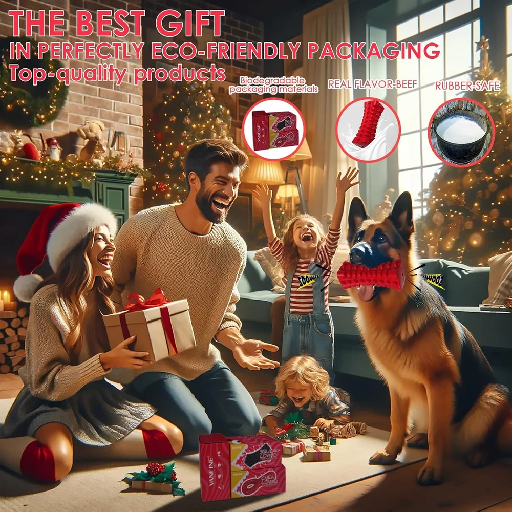 Super Durable Material: Made with industrial-grade rubber to withstand even the most aggressive chewers. Squeaker for Endless Fun: Keeps dogs engaged and entertained, reducing boredom and destructive behavior. Safe and Non-Toxic: Free from harmful chemicals, ensuring safe play for all dogs. Teeth-Cleaning Design: Textured surface helps promote healthy gums and reduce plaque buildup. Indoor and Outdoor Use: Perfect for play sessions both at home and outdoors, easy to clean. Supervised Play Recommended: Always supervise your dog during play to prevent accidental ingestion if the toy becomes damaged. Customer Service:Unpredictable dogs are common. Test subjects for this squeaky chew toy include Pitbull, German Shepherd, Mastiff, Siberian Husky, Labradors, and many more powerful chewers. 1*large squeaky dog chew toys (for medium large breed dogs 35-100 lb, not for small dogs). If there's a problem with the squeaky toy, just click "Contact Us" and we'll be pleased to help you out. Product Description What is VANFINE? Interact with Your Dog This interesting toy ball will do a lot of help to release dog’s pressure as well as cultivate your dog’s trust and understanding. Strengthen the bond between you and your lovely pet, so the relationship between you will get closer and closer. Note: Toys are not 100% indestructible, so keep an eye on your dog in case it accidentally swallows the pieces. Train Your Dog’s Brain the toy keeps your dog playing all day without getting bored, making them more lively and lovely.It's important to keep your dog happy and healthy. VANFINE helps provide mental and physical stimulation. Excellent Quality All VANFINE dog toys are made in 100%-safe. Safety grade material without BPA is used to ensure food safety and protect dog’s health at the same time. Almost Indestructible Chew Toy Made of high quality materials that will uphold through rough and tough play, the toy can also help reduce destructive behavior of dogs, protecting shoes, socks, sheets, sofas not being destroyed! For Squeak-Loving Dogs Featuring a built-in squeaker, the VANFINE Squeaker toy grabs dogs' interest for engaging games of fetch.It's important to keep your dog happy and healthy. VANFINE helps provide mental and physical stimulation. Almost Indestructible This Dog Toy is made of extremely durable, all natural rubber to stand the most aggressive chewers. While no dog toys are truly indestructible, this one is top level. Beef Flavor We use only 100% real food ingredients for flavor and scent. this beef flavor doggy chew satisfies your dog’s natural chewing instincts. Good for Teeth Caring for your dog’s teeth from puppyhood to adulthood can help prevent serious health issues. Our dental solutions make it easier to establish a simple dental care routine. Our dental chew toys and chew treats also help alleviate puppy teething pain and instill positive chewing habits during this critical stage.