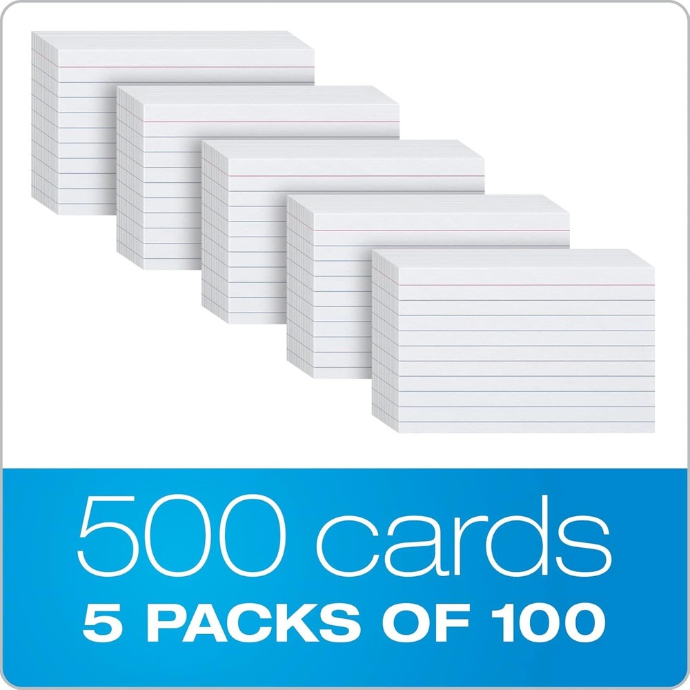 Index Cards, 3 X 5 Inches, White, Lined on Front, Blank on Back, Flashcards for