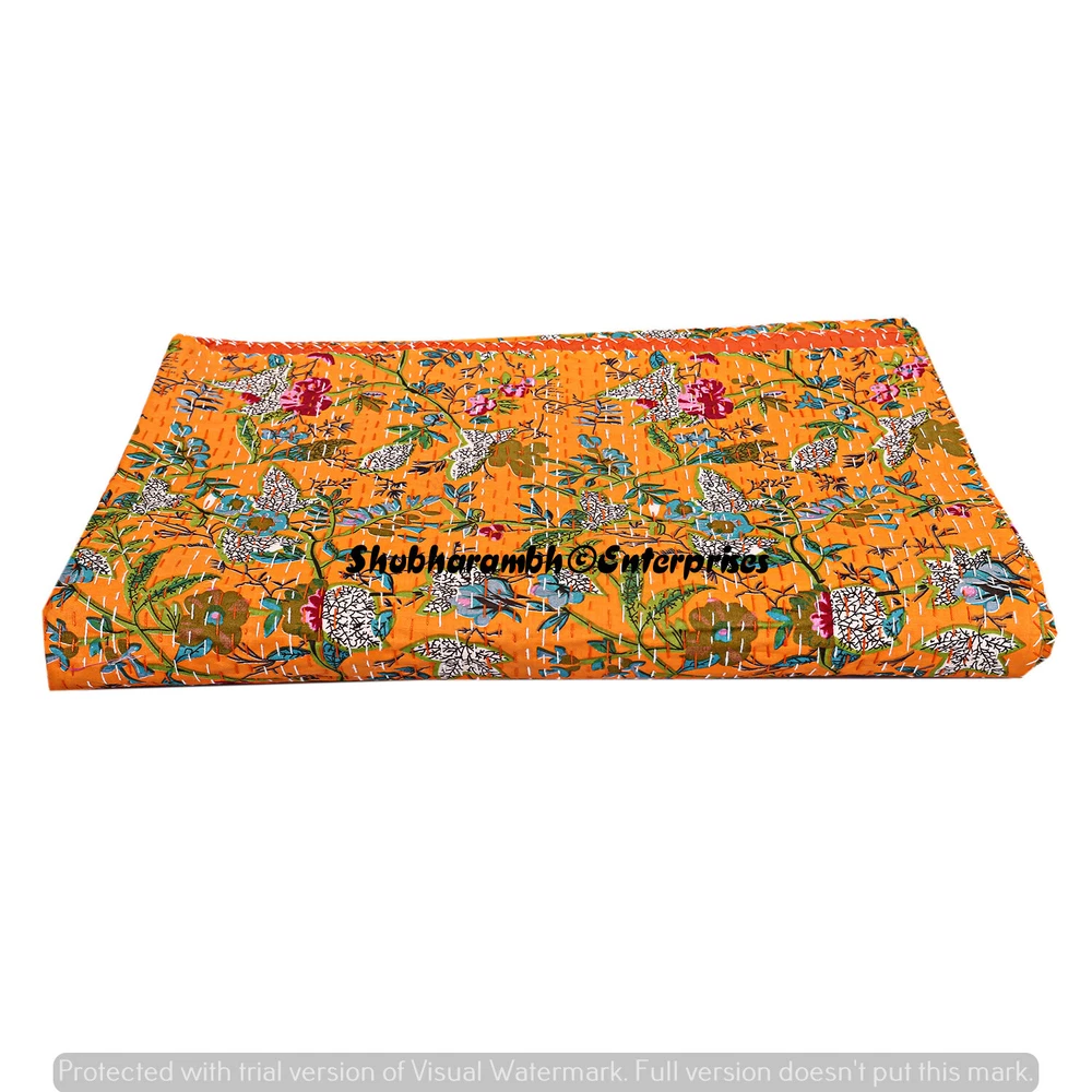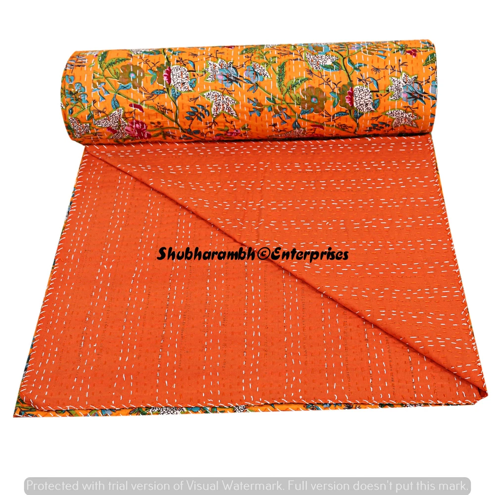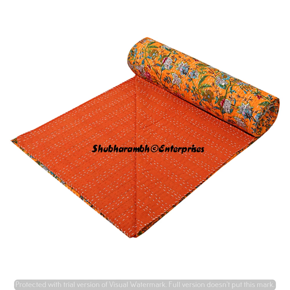 Product Details : Item - 1 PC Indian Cotton Kantha Quilt Fabric - 100% Cotton Fabric. Dimension - 90'' x 108" Inch (228 x 274 Cm) Colour - As Show in image Wash Care - Machine Washable . Product Description: Indian Cotton fabric Hand Kantha Quilted Queen Size Quilt, Blanket / Bedspread These Hippie Kantha quilt is made by two layer cotton fabric. These Kantha quilt is made by most of valuable hand art to give a unique Kantha pattern. Front side always Screen printed with kantha Work and back side always solid pattern. Payment policy: We accept the payment by pay pal. International buyers are responsible for their countries duties and taxes. Shipping Policy: We ship The Item Worldwide By FEDEX , UPS and by BOMBINO services. Feedback: Our aim is 100% buyer satisfaction. If you are pleased to our service so give a positive feedback.