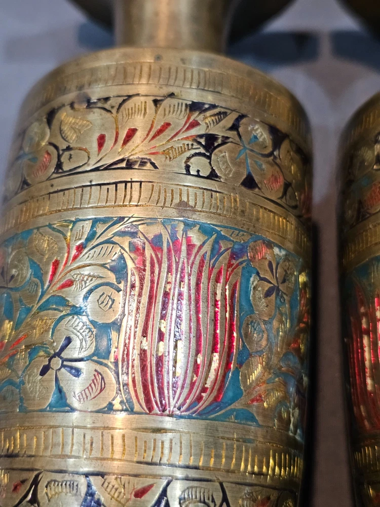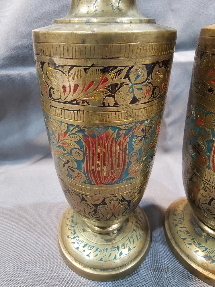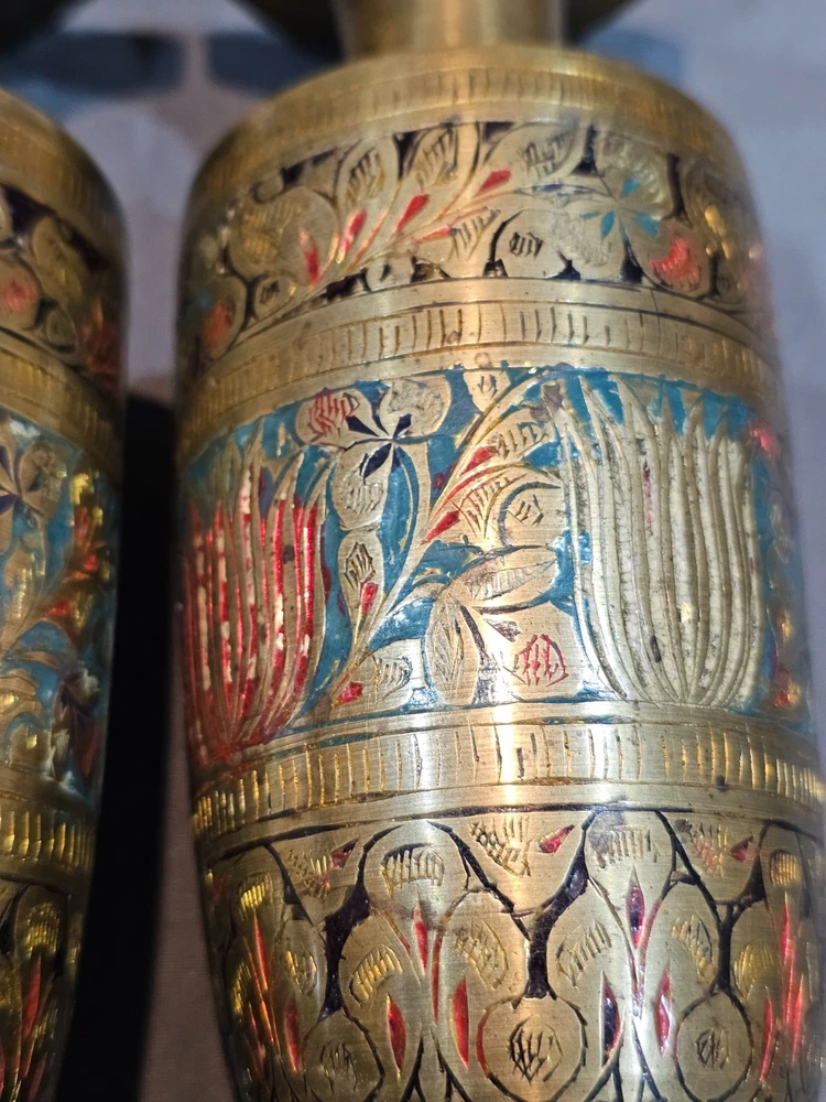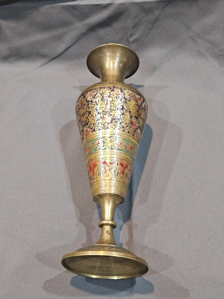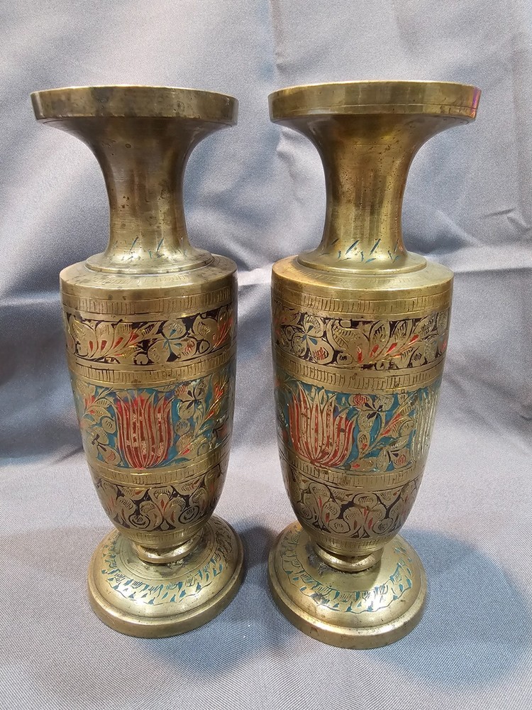 *Sizes are approximate Tall Vase: 12" x 4" Two Smaller: 7.5" x 2.5" Medium Vase: 9" x 3.5" Condition: Please keep in mind these authentic vintage brass items from India and/or China are pre-owned and display various signs of age and use. Each piece may have dents, scratches, discoloration, blemishes, or other imperfections that add to its character and patina. All items are sold in as-found condition; please review photos and descriptions carefully. If you have questions about a specific item’s condition, feel free to ask before purchasing. Please Read Before Buying: · All items are described and photographed to the best of my ability, including any known flaws, defects, or wear. Please review all photos and description details carefully before purchasing, as they represent the exact condition of the item. · Photos are considered part of the description — please zoom in to review them carefully before purchasing. · Item measurements, sizing, or fit are the buyer’s responsibility to confirm before purchase. · Color may vary slightly due to lighting, camera, or screen differences. · This item is sold as described in the listing. Returns are only accepted if the item significantly differs from the description, per eBay’s Money Back Guarantee policy. · The listing price reflects the condition, and all known defects are disclosed. · I cannot guarantee the item’s performance or longevity after purchase, as usage and care are beyond my control. · Only the items shown in the photos are included—no additional accessories, manuals, or boxes unless explicitly stated. · If you have any questions about the item’s condition, size, or features, please ask before placing your order. · As per eBay policy, buyers may still open cases under eBay’s Money Back Guarantee if the item significantly differs from the description. Buyer Advisory for Vintage Items and Antiques: · Please note that the information provided in this listing may be incomplete or inaccurate. It is recommended that you use the details as a starting point to form your own judgment. I appreciate any additional information that could enhance or clarify the history of the objects. · Given the uncertainty surrounding this piece, we advise potential buyers to proceed with caution. The purchase decision rests entirely with you, and you assume any associated risks. · We encourage interested parties to conduct their own research or seek expert opinion before making a purchase decision.