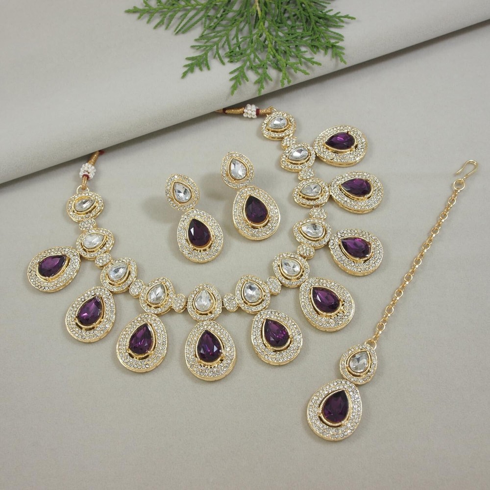 I Jewels Indian Wedding Bollywood Gold Plated Traditional Kundan & Stone Choker Necklace Jewellery With Earrings Set for Women Product Details Color: Purple Brand: I Jewels MPN: IJ371Wi UPC: Does not apply EAN: Does not apply Department : womens Date First Available : September 12, 2023 Brand, Seller, or Collection Name: I Jewels Metal stamp: 18k Metal: alloy Material: Metal Gem Type: No Gemstone Chain: Bead Clasp: Lobster Clasp Ring size: one Size Model number: IJ371Wi Add a touch of regal beauty to your attire with this stunning traditional Kundan and stone studded choker necklace set by I Jewels. Plated in gold, the set includes a beautiful choker necklace, matching earrings. The intricate Kundan and stone work give this set a unique and sophisticated design that is perfect for any formal event or occasion. The high-quality materials and expert craftsmanship ensure that this set will last for years to come, making it a great investment for any jewelry collection. Whether you're dressing up for a wedding, party, or just want to elevate your everyday look, this necklace set is sure to make you stand out. Give yourself or a loved one the gift of regal beauty with this exquisite jewelry set.