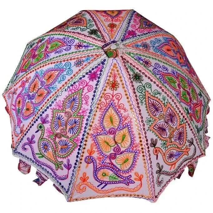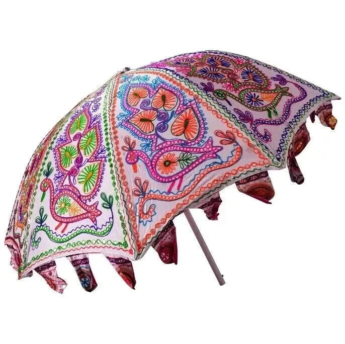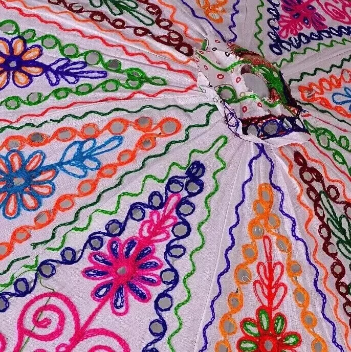 !! Item Description!! Item - 1 PC Garden Umbrella / Parasol / Patio Design - Elephant Embroidered Fabric - Cotton , wool Embroidery Size - 72" Inch (Diameter) Approx. Color - Multi Color !! Product Description!! * Beautiful Indian Hand Embroidered Cotton Fabric umbrella is handcrafted by village artists in Rajasthan. * Diameter of open umbrella is 72" inch (167 cm ) approx. * The umbrella is beautiful and complete decorated with embroidery & Sequins work . These handicrafts are designed in various color combination and are offered in a multitude of motifs, patterns, various other specifications. *Eye-catching appearance, wide space and high load bearing are added on features that makes our umbrella a preferred one . *These umbrellas are handcrafted and hence, give a gorgeous overall look. !! Shipping Policy!! 1. We Ship Within 1-2 Business Days After Receiving Order/ Payment. 2. Country's Custom Duties, Taxes & Charges are to be paid by buyer if there are any. !!Payment Policy!! 1. We Will Accept Payment Via Payoneer (Paypal) Only. 2. International Buyers are responsible for their Country Custom Duties & other charges. !!Return Policy!! 1. Returns Accepted From Buyers Within 30 Days of Delivery. 2. Shipping Charges will be made by Buyers When Return. !!Other Products!! We are also selling Ottoman Cover, Cushion Cover, Pillow Cover, Pouf Cover, Tapestry Wall Hanging and many more under Home Decor Category. "Customer is a king" seller depends on you, so your positive feedback is extremely valuable to us. If you have any concerns about your order, please contact us through an eBay message to resolve any issues before leaving negative feedback or opening a dispute. We will try our best to resolve it. Our goal is to give the best service to all customers. We ship the product after performing the high quality check .We are always committed to doing our best” Thank You. Have A Nice Day. Perfect Gift for any Occasion