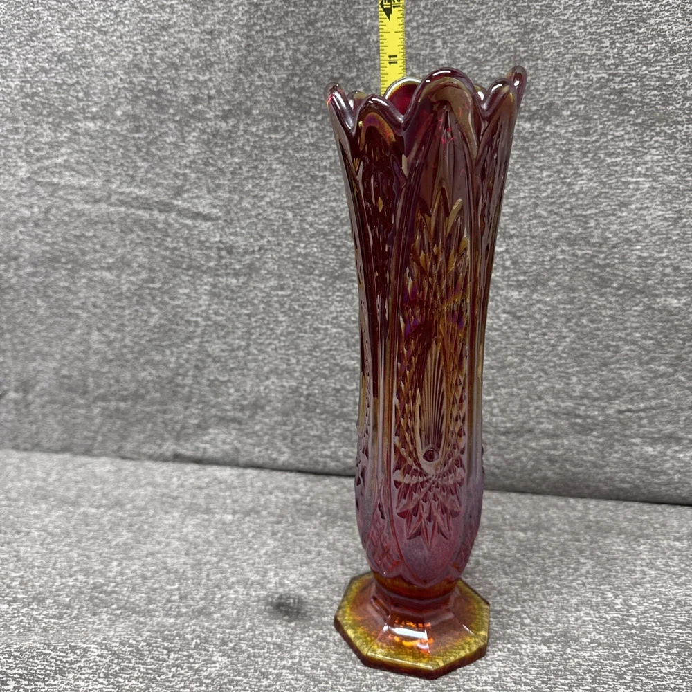 Approx 11” tall red iridescent vase. No chips or cracks beautiful. Please see photos before purchasing