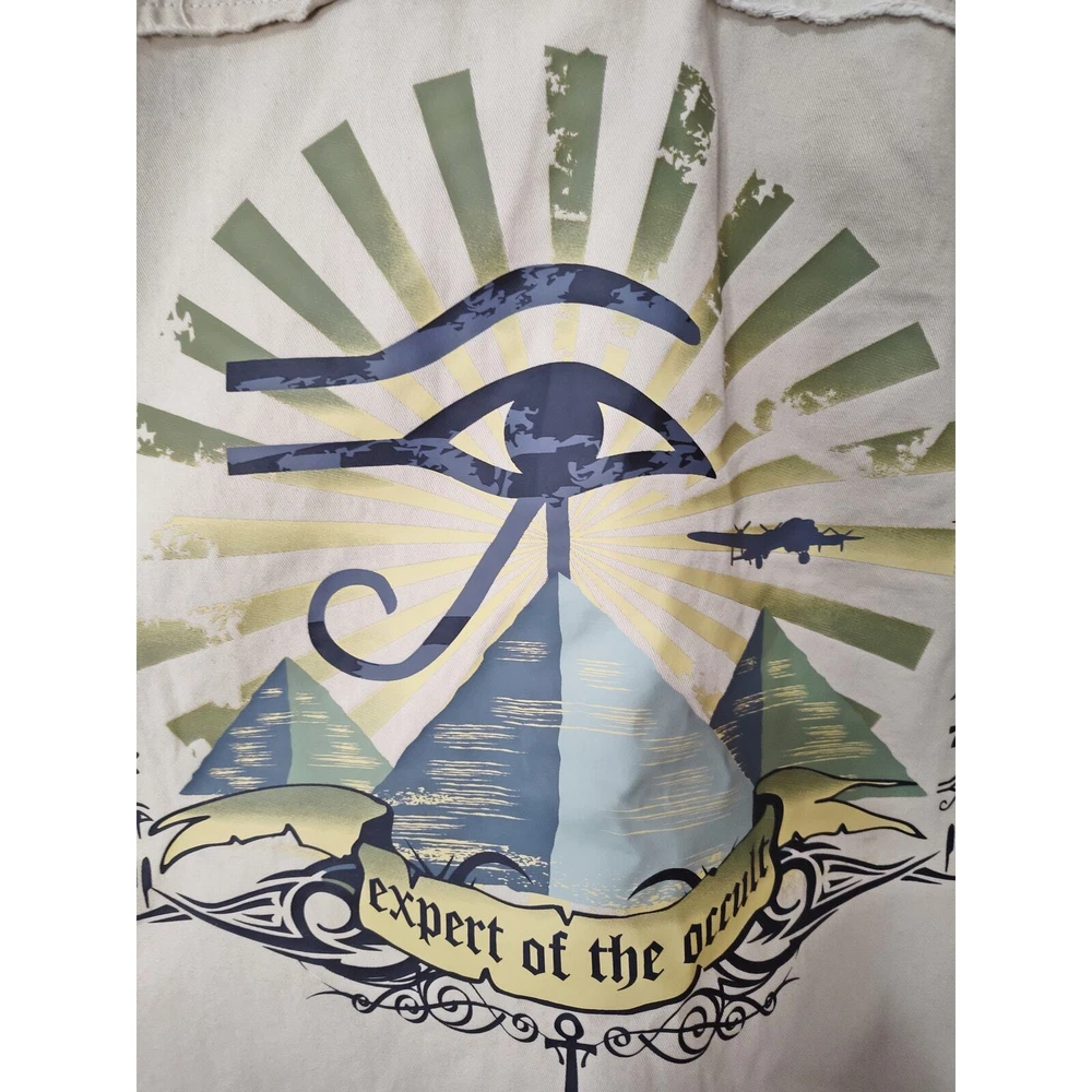 Unleash your inner adventurer with this Her Universe Disney Indiana Jones Utility Overshirt! This long sleeve button-down shirt in a rugged tan features a stylish frayed hem and two chest pockets, one adorned with a patch that says "Indiana Jones" alongside the classic Indy hat. The back of the shirt boldly declares "Expert of the Occult," adding a touch of mystery. As a BoxLunch Exclusive, this utility overshirt is perfect for fans of the legendary archaeologist. Embrace the spirit of adventure with this unique and practical piece! Size: Measurements are approximate Size medium Condition: New with tags. Have a magical day Pet-free, smoke-free home.