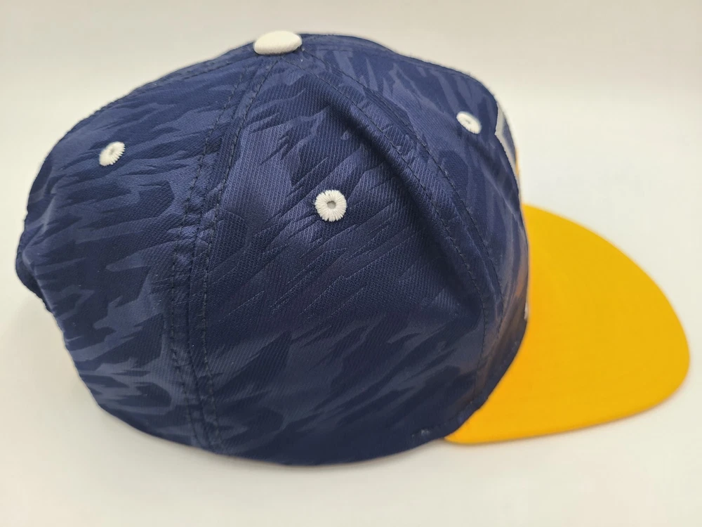 Has some stains on the brim as seen in photos. Indiana Pacers Adidas Camo Snapback Hat Cap Men Women NBA Basketball Blue Yellow. EACH ADDITIONAL HAT PURCHASED IS ONLY $1 ADDED SHIPPING!