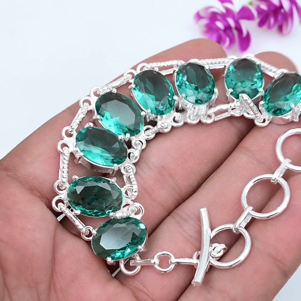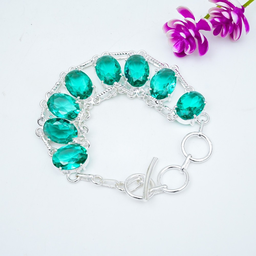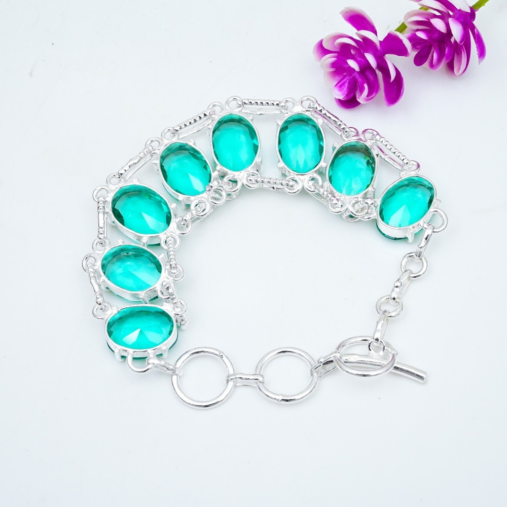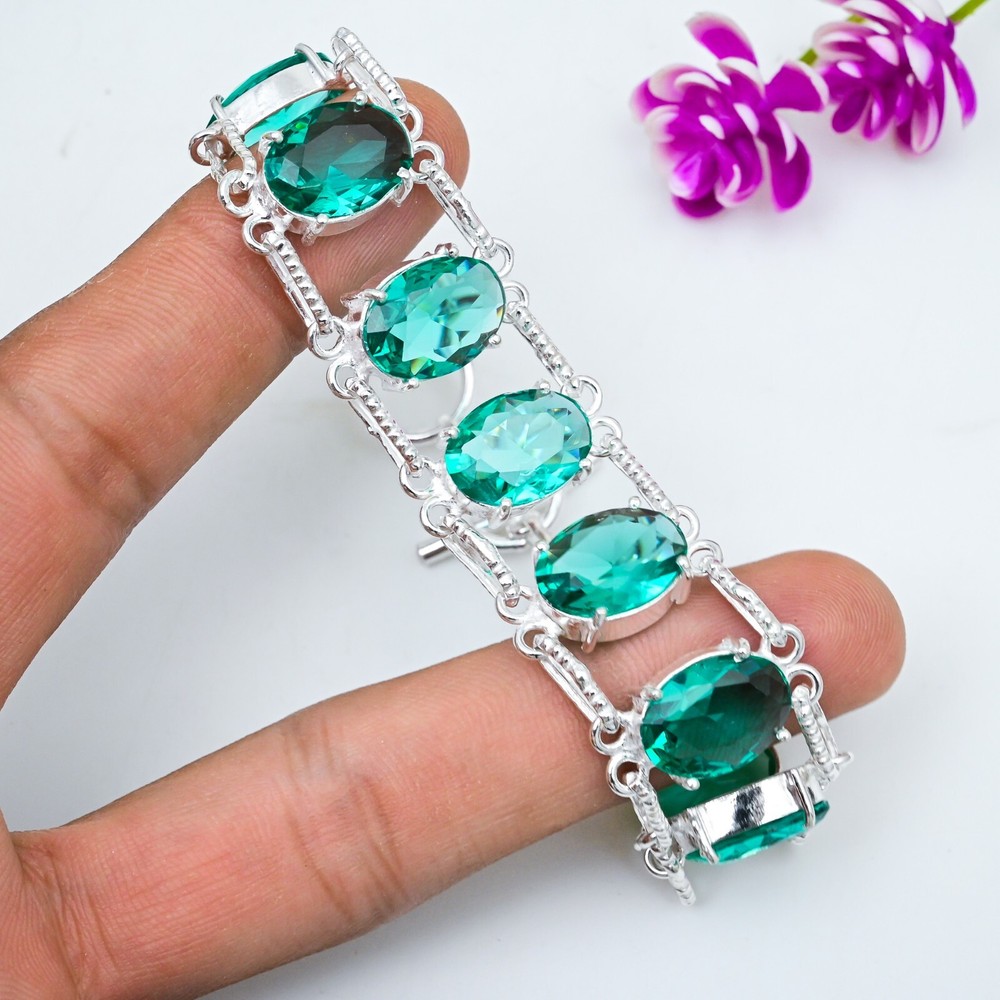 Features:AdjustableCertification:N/AMain Stone Creation:Lab-CreatedMain Stone Color:GreenColored Diamond Intensity:N/AStyle:ChainCollection:HandmadeCountry/Region of Manufacture:IndiaShape:Same As PictureClosure:AdjustableType:BraceletSecondary Stone:N/AMetal:Sterling SilverMain Stone Shape:OvalNumber of Diamonds:N/AMain Stone:IndicoliteTheme:Beauty, Bohemian, Ethnic, Halloween, LoveMain Stone Width:N/AItem Length:7-8"Material:GemstoneBase Metal:Sterling SilverCut Grade:ExcellentDiamond Color Grade:N/AMain Stone Treatment:Not EnhancedTotal Carat Weight:10 carat and aboveMain Stone Depth:N/ACountry of Origin:IndiaBrand:HandmadeOccasion:Anniversary, Birthday, Christmas, Engagement, Mother's Day, Valentine's Day, WeddingNumber of Gemstones:8Diamond Clarity Grade:N/AMetal Purity:925Main Stone Length:N/ACharm Type:Same As PictureColor:SilverSetting Style:ProngChain Type:N/A