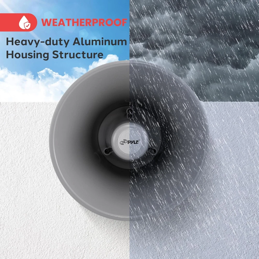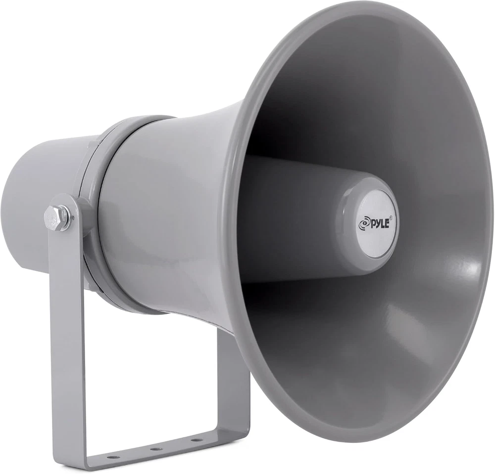20 WATT POWER: Amplify your sound with clarity with this heavy-duty PA horn speaker. It produces high powered 20 watt sound which is enough to achieve your desired loudness so you can play your favorite tracks as loud as you want and with style 400Hz - 5KHz FREQUENCY RESPONSE: Efficient enough to achieve your desired response, this 9.7-inch compact horn pa outdoor loudspeaker audio horn speaker has 8-ohm impedance, 102dB SPL, & 400Hz - 5KHz frequency range for full-range sound reproduction FOR 70V AUDIO SYSTEM: Pyle horn pa speaker horn indoor/outdoor megaphone is great for your 70 V audio system. Perfect for outdoor PA systems when you need your voice heard far and wide. Includes a 70 Volt transformer tappable at 20, 10, & 5 watts EASY INSTALLATION: The mountable public address power horn speaker outdoor pa speaker comes with mounting bracket and hardware to make installation easier. The power horn only weighs 5.97 lbs and measures 9.7" H x 9.7" W x 11.3" D in total ALUMINUM HOUSING: This compact horn loud speaker music horn speaker sports an aluminum housing structure. The heavy-duty housing and structure provides a strong foundation and it is super easy to mount and install to your existing sound system 9.7-Inch Indoor/Outdoor with 70 Volt 20 Watts PA Horn Speaker