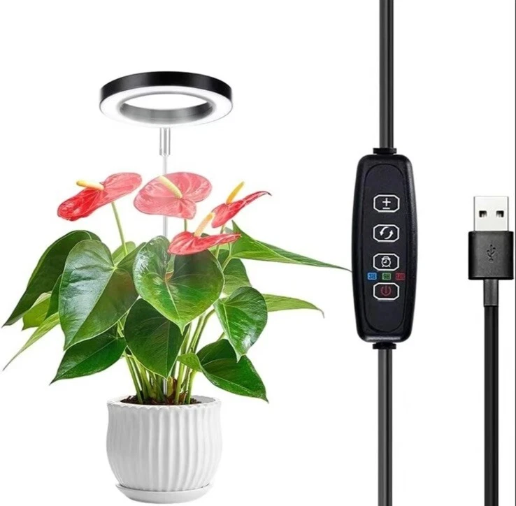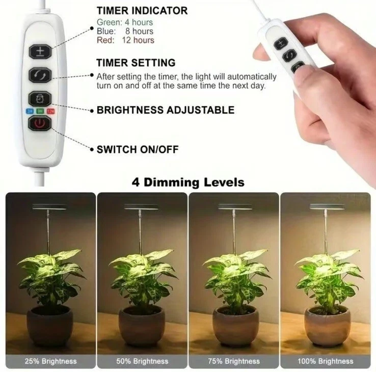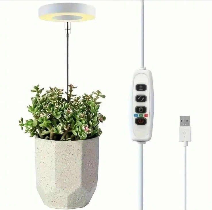 Indoor Plant Growth Light, 1 Count USB Powered LED Height Adjustable Plant Light with 4 Dimming Brightness & 4/8/12 H on/Off Timer