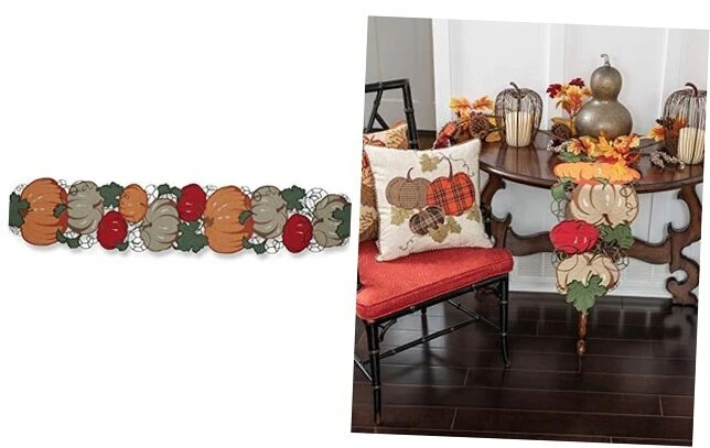 30 Days Return Policy Fast Delivery Trusted seller Indoor Pumpkin Stack Harvest Table Runner, 12" x 68", Multicolored Product Description 100% Polyester One (1) decorative fall table runner (12” x 68”) Rustic pumpkin in open cutwork design is perfect for fall decorating or table setting Features embroidered leaves, intricate vines and pumpkins in rich autumn colors Recycled polyester; exclusive of decoration Easy care – spot clean only as needed Shipping Returns Payment Shipping Shipping is FREE to all addresses other than APO/PO boxes in the lower 48 states. All our stock ships from US-based warehouses. Shipped via USPS or UPS (depending on location and package weight) Unless stated otherwise, all orders will ship within 24-72 hours of your payment being processed. Check our feedback to see the great reviews of FAST shipping we offer. Returns As our valued customer, we will do our best to make sure the product you receive arrives to you on time and as expected. If you are not satisfied with your purchase, please contact us within 30 days of receiving your order to process a return. Payment We currently accept payment via eBay managed payments only. Once payment is cleared, we will dispatch your shipment within 1-3 business days. Please refer to the "Shipping" tab for more information regarding shipping speed to your destination.