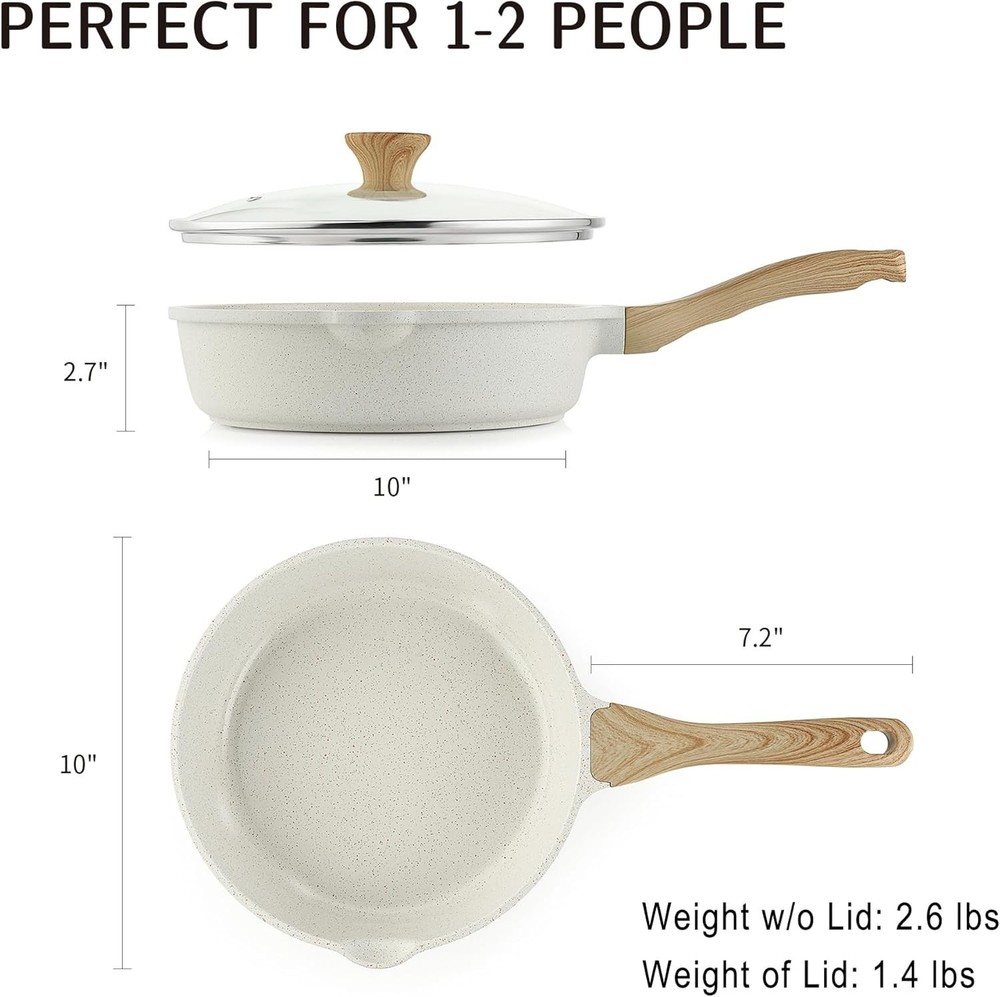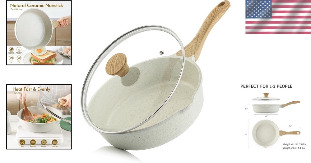 Induction Compatible 10-Inch Ceramic Saute Pan with Glass Lid & Stay Cool Handle ‹ › ‹ › ‹ › ‹ › ‹ › ‹ › ‹ › ‹ › ‹ › Induction Compatible 10-Inch Ceramic Sauté Pan Healthy Ceramic Skillet Made of natural ceramic, free of intentionally added PFOA, PTFE, PFAS, lead, and cadmium. No toxic substances will be produced even when overheated. Experience peace of mind knowing there’s no coating to come off into your food. Features: Super Nonstick Surface: The smooth ceramic surface ensures that eggs and other delicate foods slide right off with minimal effort, resulting in flavorful dishes with less oil. Induction Ready: The stainless steel base makes this pan compatible with all stovetops, including induction cooktops, while the cast aluminum construction guarantees fast and even heat distribution without warping or wobbling. Versatile Cooking: With a size of 10" in diameter and 2.7" tall (3.5 Quart capacity), this sauté pan is perfect for sautéing, stir-frying, boiling, shallow frying, and deep frying. The handy pour spout makes it easy to transfer soups and oils. Durable Glass Lid: The transparent tempered glass lid allows you to monitor cooking without losing heat or moisture, enhancing your culinary experience. Ergonomic Handle: The Bakelite handle is designed for comfort and stays cool while cooking, ensuring a safe and pleasant cooking experience. Oven safe up to 302°F. Easy to Clean: With its slick nonstick surface and rivet-free design, cleanup is effortless. A quick wipe with a paper towel is all it takes! Hand wash recommended to extend the nonstick surface life. Why Choose Our Ceramic Sauté Pan? If you prioritize health and the quality of your cooking, then this induction-compatible ceramic sauté pan is the best addition to your kitchen. Enjoy culinary creativity with a pan that delivers both functionality and elegance, ensuring your meals are not just delicious, but also health-conscious. Elevate your cooking experience today with our 10-inch ceramic sauté pan. It's time to create vibrant, flavorful dishes that bring joy to your table! Shipping Free & Fast Shipping - We offer free shipping to most of the USA with a normal delivery time of 3-7 days. However, due to the current situation, additional delivery time (up to 3 weeks) may be required for some items. Alternative Carriers - We may use alternative carriers (e.g. USPS, FedEx, UPS, etc.) to ensure your package arrives safely and on time. Due to the use of multiple carriers, we are unable to provide a tracking number automatically. Handling Time - Orders are processed and shipped within 1-2 business days of receiving cleared payment. Shipping Restrictions - Shipping to Alaska, Hawaii, Puerto Rico, Guam, and other US territories may incur shipping charges or delivery restrictions. Please contact us before ordering, or your order can be refunded/cancelled. State Restrictions - There may be restrictions based on your state of purchase. For example, certain items may not be shipped to California due to state regulations. Contact for Tracking Updates - If you require tracking updates or have any concerns about the delivery of your order, please feel free to contact us, and we will be happy to assist you. Return 30-Day Hassle-Free Returns - We want you to be completely satisfied with your purchase. If you are not, you can return the item within 30 days of receiving it for a full refund or exchange. Easy Return Process - To start a return, simply contact us and we will provide you with a prepaid return shipping label and detailed instructions. Restocking Fee - There are no restocking fees for returns. However, the buyer is responsible for return shipping costs if the return is not due to a seller's error. Refund Processing Time - Refunds will be processed within 5 business days of receiving the returned item in its condition. Payment We accept all major credit cards, PayPal, and Apple Pay for your convenience. Your payment information is secure and encrypted to ensure a safe and seamless transaction. Please complete your payment within 3 days of purchase to avoid any delays in shipping. Feedback Your feedback is extremely important to us. We strive to provide the best products and customer service possible. If you are satisfied with your purchase, please take a moment to leave us a positive review. If you have any concerns or issues with your order, please contact us before leaving negative feedback. We are committed to resolving any problems and ensuring your satisfaction. Contact Us If you have any questions or concerns, please feel free to out to our customer support team. You can contact us through the eBay messaging system. We are available Monday to Friday, 9:00 am to 5:00 pm EST, and we will do our best to respond to your inquiry within 24 hours. Buy it now and enjoy a pleasant shopping experience! Unit Quantity: 3.5 QT Stove Type Compatibility: Electric,Gas,Induction Set Includes: Lid Material: Ceramic Features: Dishwasher Safe,Non-Stick Type of Oven: Electric Type: Saute Pan Surface Coating: Non-Stick Item Diameter: 10 in Color: White Shape: Round Item Height: 2.7 Inches Item Depth: 2.7 in Number of Items in Set: One-Piece Heat Resistance: 550°F Item Weight: 3 lb