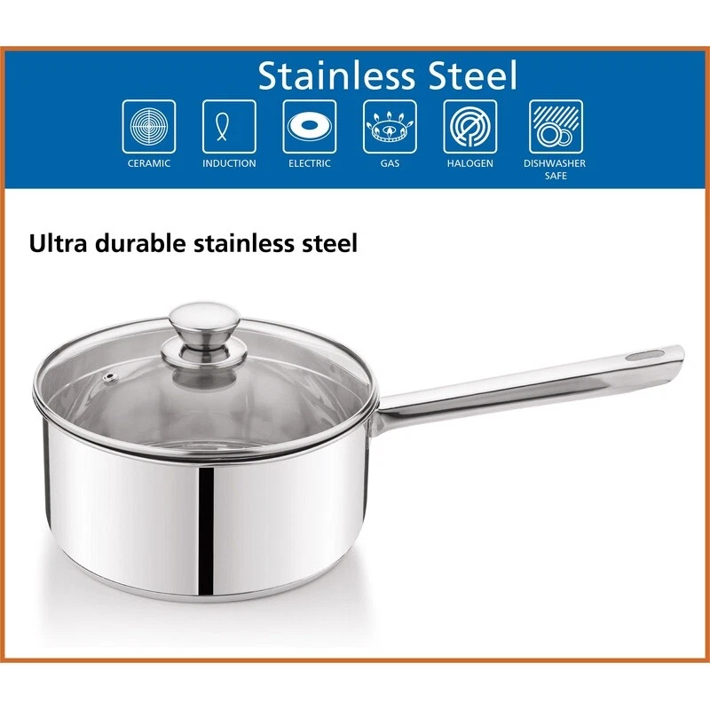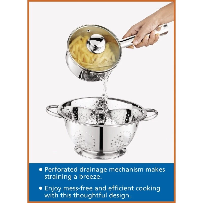 You may also like 8qt Stainless Steel Stock Pot W/ Lid Dishwasher Oven Safe Induction Cookware New 34.2 USD 36.0 USD Free shipping 5% off Non Stick 5 Qt Aluminum Stock Pot W/ Glass Lid Strainer Twist Lock Handles New 32.36 USD 34.06 USD Free shipping 5% off Nonstick Aluminum Sauce Pan 3qt Gray Stay-Cool Handle Heat-Resistant Lid New 21.26 USD 22.38 USD Free shipping 5% off Whether you’re cooking pasta for lunch, boiling eggs for breakfast, or meal prepping for the week, the Stainless Steel 3-Quart Saucepan with Straining Lid is the essential needed to make meals possible. The stainless-steel pot can boil water for all your cooking needs while the straining lid makes it easy to finish the job with less of the mess. The Stainless Steel 3-Quart Saucepan with Straining Lid is the saucepan for kitchens in need of this essential. 3 qt Induction Compatible Stainless Steel Saucepan with Lid Versatile 3-Quart Capacity: Ideal for cooking pasta, boiling eggs, and meal prepping with a 28L saucepan and straining lid set Durable Construction: Made with riveted heat and shatter-resistant glass for lasting durability and resilience Tri-Ply Base: Ensures quick and even cooking for enhanced culinary results Convenient Pour Spout and Straining Lid: Eliminates the need for a separate strainer, streamlining your cooking process Stylish and Coordinated Design: Complements your existing cookware while being made from ultra-durable stainless steel for long-lasting use You may also like Non-Stick Muffin Pan 12 Cup Carbon Steel Bakeware Baking Tray Cupcakes Kitchen 16.05 USD 16.89 USD Free shipping 5% off K- Slim Single Serve K-Cup Pod Coffee Maker Multistream Technology Home Office 122.27 USD 128.7 USD Free shipping 5% off Electronic Temperature Control A421 Series Durable Single Pole Double Throw New 172.45 USD Free shipping Crispy Protein Bars Low Carb Gluten Free 17g Protein Cookies Cream 4 Count New 12.99 USD 13.67 USD Free shipping 5% off Cat Cube Condo Sturdy Construction Play Lounge Padded Toy Modern Design Gray New 35.3 USD 37.16 USD Free shipping 5% off Heavy Duty Push Up Bars Stainless Steel Non Slip Handles Strength Training New 51.4 USD 54.11 USD Free shipping 5% off Solar Floating Ball Lights Flickering Flame Waterproof Outdoor Garden Decor New 30.49 USD 32.09 USD Free shipping 5% off 25Qt Marine Cooler Hard Sided Portable W/ Cool Riser Fish Ruler UV Protection US 43.2 USD 45.47 USD Free shipping 5% off Insulated Food Jar Vacuum Stainless Steel W/ Folding Spoon Outdoor Adventure New 24.89 USD 26.2 USD Free shipping 5% off 20 Piece Gold Stainless Steel Flatware Set Service 4 Elegant Dinner Utensils New 23.08 USD 24.3 USD Free shipping 5% off Warm Mist Humidifier Baby & Adult Relief Cough Congestion Allergies Dry Air New 50.44 USD 53.09 USD Free shipping 5% off Compact Mini Air Fryer Digital Timer Nonstick Healthy Cooking Shake Reminder 2Qt 61.74 USD 64.99 USD Free shipping 5% off