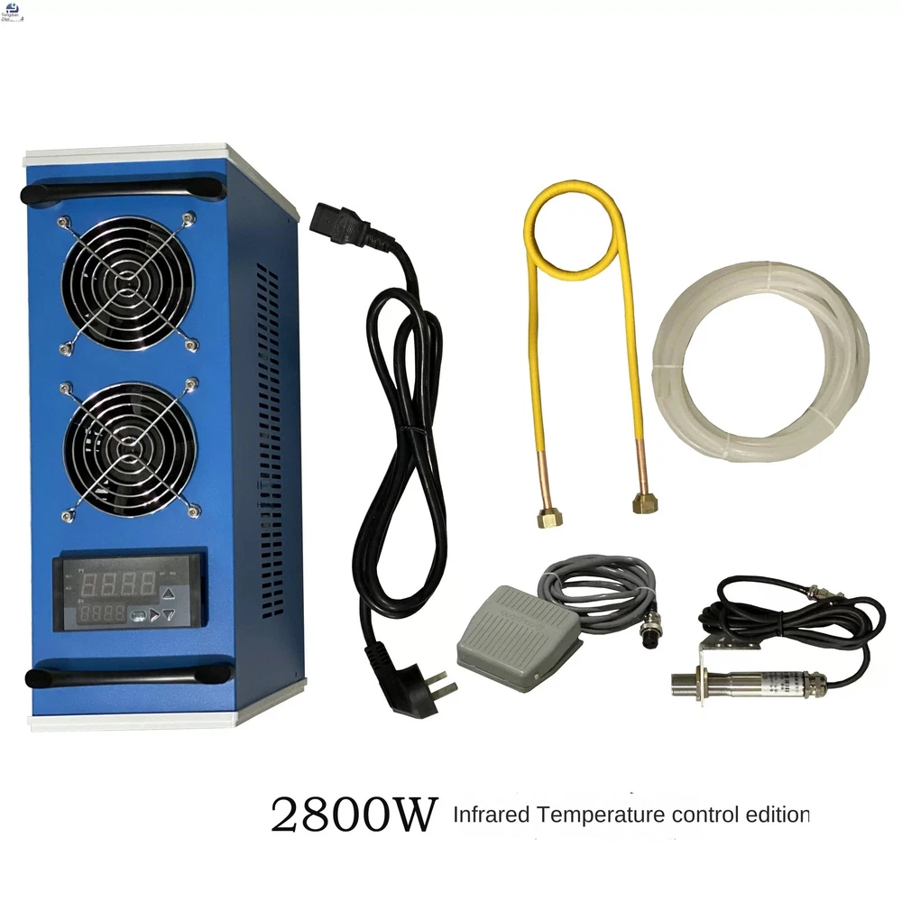 2800W ZVS Induction Heater Metal Smelting Furnace Metal Quenching Equipment Adjustable power+Temperature control 1-600 ° C We are not responsible for any custom duty or import tax, it is buyer’s responsibility. This product is a small power induction heating machine with AC110V-220V power supply. It can be used for heating and quenching of small iron metal materials. It can be used with 70mL graphite crucible to reach a maximum temperature of 1600 degrees Celsius. It can easily melt iron, copper, gold, silver and aluminum. metal. Features: 1. It adopts integrated metal shell design, which is convenient to use and carry, and has good heat dissipation; 2. Integrated power supply to avoid complicated wiring; 3. The heating ring is wrapped with high temperature insulation material to prevent short circuit during heating, and the heating ring can be removed and replaced to customize a specific heating ring; 4. Integrate the internal water cooling circulation system to prevent the heating coil from overheating; 5. The top two high-power fans are used for heat dissipation; 6. Add a current overload protection switch to trip the protection circuit in case of overload; 7. Large LCD screen display system's various operating parameters, including voltage, current, power, motherboard temperature, etc., and can be easily switched in Chinese and English. Parameter: 1. machine size: 380*140*210 mm; 2. Heating ring size: 70*60*73 (inner diameter * outer diameter * high); 3.crucible size:45*80mm 4. Input voltage: AC110-AC220V 12A; 5. DC working voltage: 48V (internal power supply voltage is the apparent voltage); 6. Maximum DC operating current: 50A 7. Direct heating of metal iron up to 800-900 degrees Celsius 8. Use crucible maximum temperature 1600 degrees Celsius Packing: machine 1pcs(0-2800W Adjustable Power+ Temperature control 1-600 ° C) Heating copper tube 1pcs crucible 1pcs Foot switch 1pcs Infrared temperature sensor 1pcs Precautions: 1. The boot sequence should follow the first turn on the main power switch. After waiting for a few seconds, you can see that the fan and the pump are working normally. When the voltage is displayed as 48V, you can turn on the inductive heating switch on the back. Do not operate incorrectly, otherwise it will be directly Burn out the motherboard and no protection. Turn off the heating switch and then turn off the power switch when shutting down. If the shutdown is not used for a period of time, the total power supply should be turned off after the heating switch is turned off for one minute, so that the cooling system will cool the system and increase the service life; 2. Work must be water-cooled and air-cooled at the same time. If any one of them does not work, immediately disconnect the power supply and contact the manufacturer for a solution; 3. If the conditional water cooling can be directly discharged by using cold water and hot water, the circulation method is not adopted, so that the heat dissipation effect is better; 4. Long-term use of antimony should be prepared, graphite high-temperature heating will react with oxygen to form carbon dioxide and gradually consume it; 5. Always pay attention to the changes of various parameters of the display, especially the voltage and current and the temperature of the motherboard. Whenever an abnormality is found, the power must be disconnected immediately. 6. When using at high power, it is normal for the operating noise of the heat dissipation system to be relatively large. ① Master power switch ②AC110V-AC220V input interface ③ Infrared temperature sensor interface ④Water-cooled water pipe ⑤Main display ⑥ Overload indicator ⑦Heating indicator ⑧Output interface ⑨Continuous heating switch ⑩Reset switch