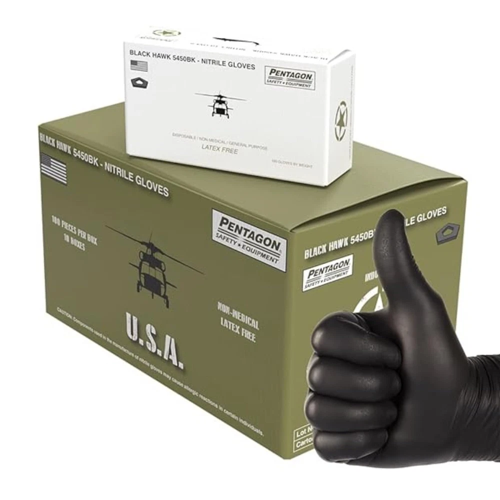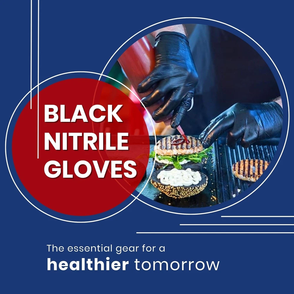 Industrial Black Nitrile Gloves, Heavy Duty Disposable Gloves, Size M