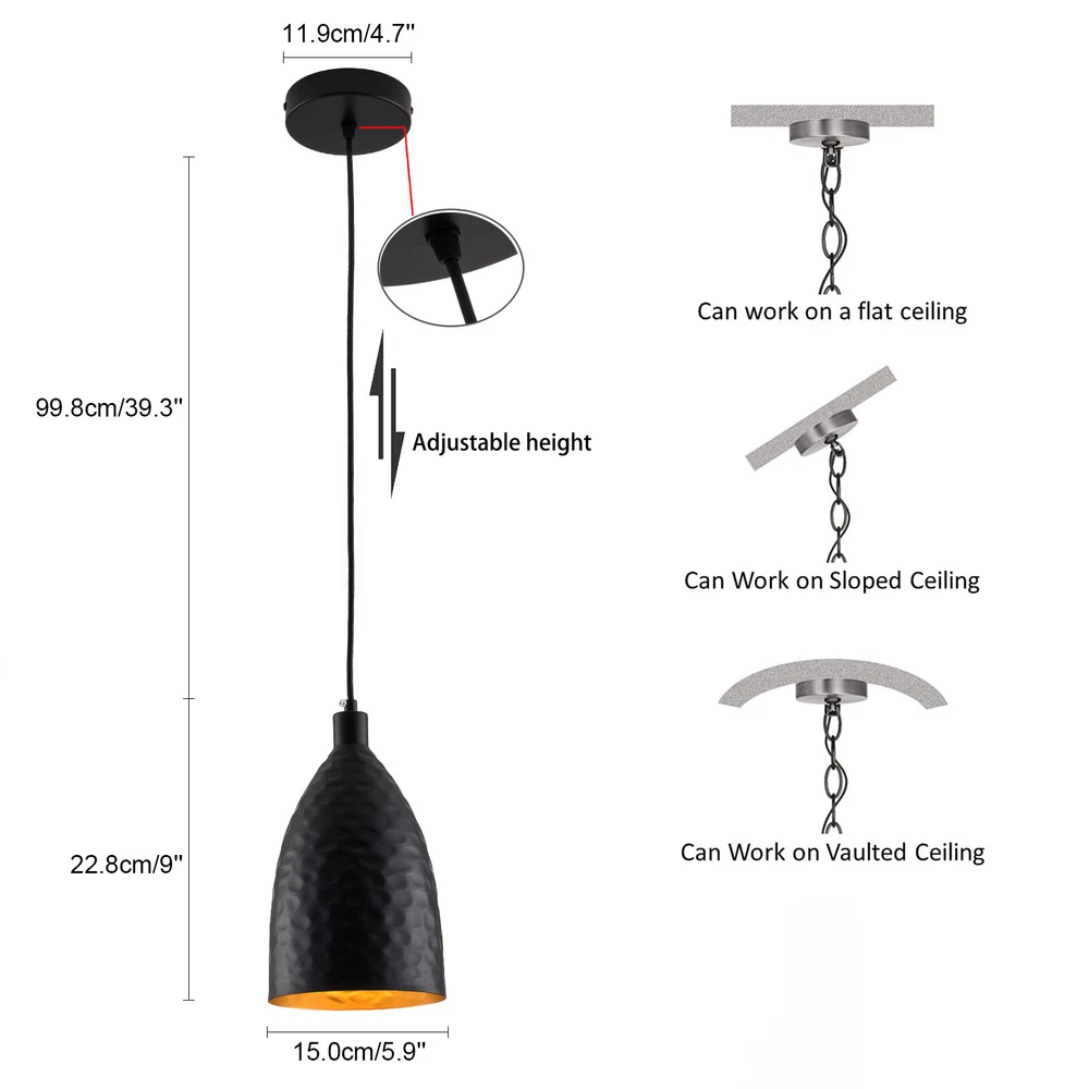 Industrial Kitchen Island Pendant Light Ceiling Lighting Fixures Black About this item 1. Well Made Industrial Style: Industrial pendant light featuring unique light shade in black finish, provide a perfect indoor decoration for you.QUALITY MATERIALS: High-gauge metal with,The drum chandelier in brass finished and features a unique,simple but appealing to the eye, complementing any indoor/outdoor decor. 2. Dimension: Lamp diameter: 5.9-inch, light shade Height: 9-inch,, cord adjustable39.3-inch. Requires 1 x E26 base 60W max bulb (Bulb NOT included). 3. Bulb holder: E26. Note: bulbs are not included. 4. The lamp works fine when used with incandescent or LED bulbs with standard E26 bases. Maximum 60W, Please note: incandescent bulbs are not included 5.Compatible With Flat & Sloped Ceiling: Industrial Chandelier Ceiling Fixture Pendant Light Kitchen Island Hanging Lamp Industrial Kitchen Island Pendant Light Ceiling Lighting Fixures Black About this item 1. Well Made Industrial Style: Industrial pendant light featuring unique light shade in black finish, provide a perfect indoor decoration for you.QUALITY MATERIALS: High-gauge metal with,The drum chandelier in brass finished and features a unique,simple but appealing to the eye, complementing any indoor/outdoor decor. 2. Dimension: Lamp diameter: 5.9-inch, light shade Height: 9-inch,, cord adjustable39.3-inch. Requires 1 x E26 base 60W max bulb (Bulb NOT included). 3. Bulb holder: E26. Note: bulbs are not included. 4. The lamp works fine when used with incandescent or LED bulbs with standard E26 bases. Maximum 60W, Please note: incandescent bulbs are not included 5.Compatible With Flat & Sloped Ceiling: You can install this rectangle pendant lighting on a flat or sloped ceiling to suit your decor in any places,It is suitable for industrial retro decoration such as living room, dining room, kitchen, bar, restaurant, hotel, barn, farmhouse, etc. 6. Wide Application: This kitchen hanging light is designed to blend into any indoor decor, perfect for dining room, kitchen island, restaurant, cafe, bar, pub, bistro. 7. Easy Installation: Instruction manual inside, all mounting hardware for quick and easy installation. Specifications - Color: Retro Texture - Materia: Metal - Shade Shape: Cylinder - Number of Lights: 1 - Bulb base: E26 - Max.Power: 40W - Voltage: 110-120V - Type of Bulb: LED / CFL / Incandescent / Dimmable Bulb (bulb not included) What you get: *Unassembed Pendant Light (Bulbs Not Included) *Screws sets *Instruction Manual Tips: -Please make sure the light is securely supported and is disconnected from power when installing. -Installing the light bulbs before hanging the makes the installation easier. ✔[Easy to install] Open the package and check the appearance of the chandelier. Follow the instructions to group the lights together and test their effects before installing them on the ceiling. In the process of assembling the lamp, please pay attention to check the position of each wire interface and tighten the fixing screws. Payment Delivery details Terms of sales About us Contact us Payment We accept ebay payment 。 Fees such as import duties, taxes are not included in the item price or shipping costs. These charges are the buyer's responsibility. Delivery details Shipping: 2-9 working days to: USA Terms of sales We maintain high standards of excellence and strive for hundred percent customer satisfaction. Feedback is very important to us. We hope that you contact us immediately before you give neutral or negative feedback, so that we can address your concerns. It is impossible to address issues if we do not know about them! About us Your satis faction is our ultimate goal. We work hard to earn your trust and future business. Our certified technicians have tested each item before shipping. The unit comes with 1 year limited warranty on all manufacturing defects. a) If you receive a defective item, you may return it or ask for a discount. Please contact us within 14 days after you receive the package. b) What you returned must be intact and in its original packaging as re? u. Customer is responsible for shipping costs of the returned item. c) We will cover the cost of shipping back t with the shipping rate indicated in the registration page. We will send you a new unit or refund the full payment you paid. Thank you. Contact us Business Hour Business Hour: Monday To Friday: 8:30 AM to 5:00 PM (Beijing China time) Due to time zones, our reply to your questions may not be immediately. But within above working time, we will reply your email within 24 hours. If it's non-workdays, please kindly be patient and wait till Monday. Please contact us with ebay message. Please feel free to contact us if you have any questions. Monday To Friday: 8:30 AM to 5:00 PM (Beijing China time) Due to time zones, our reply to your questions may not be immediately. But within above working time, we will reply your email within 24 hours. If it's non-workdays, please kindly be patient and wait till Monday. Please contact us with ebay message. Please feel free to contact us if you have any questions. On Jan 8, 2025 at 18:26:15 PST, seller added the following information: