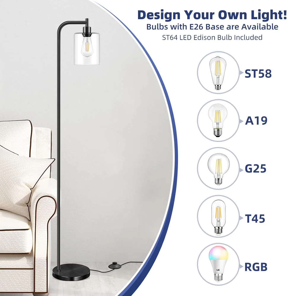 Store New Arrivals Add to Favorite View Feedback Contact Industrial Floor Lamp with Hanging Glass Shade Black Farmhouse Indoor Pole Light with Edison E26 Base Vintage Rustic Standing Tall Lighting for Living Room Bedroom Office(St64 Bulb Included) Description Item model number JF19108A.BK.C12 Light Source Type LED Style Industrial, Farmhouse Number of Items 1 Power Source Corded Electric Number of Light Sources 1 Control Method Touch Lighting Method LED Lamp Type Floor Lamp Number of Pieces 1 Room Type Living Room Bulb Shape Size ED23 Installation Type Tabletop,Freestanding Product Dimensions 9.8"D x 9.8"W x 66.1"H Material Metal Efficiency energy-efficient Finish Type Painted Specific Uses For Product Decoration Bulb Base E26 Water Resistance Level Water Resistant Batteries Required? No Item Weight 10.74 pounds Connectivity Technology USB Connectivity Protocol Homeplug Special Features Energy Efficient Special Feature Energy Efficient Part Number JF19108A.BK.C12 Shade Color Clear Mounting Type Pole Mount Color Black Wattage 60 watts Is Cordless? No Base Material E26 Shape Bulb Voltage 120 Volts Recommended Uses For Product Decoration, Indoor Shade Material Glass Finish types Painted Included Components Bulb Switch Type Foot 【Gorgeous Industrial Design Decorate Your Home】-With the simplify stylish design, this Industrial floor lamp can turn your home decor into an rustic, vintage and farmhouse atmosphere. Also, unlike other product with an very exposed socket and greenish glass shade which looks cheap, our floor lamp adopts whole socket design with high transparent sturdy glass shade, combined with flawless black spray paint which make the lamp look gorgeous and expensive, add more elegant to your house. 【Wobble-free & Sturdy Base, Safe to Use】 - With a strong heavy base, you will be able to place this modern standing lamp on any types of floors, including long-pile carpets. The industrial floor lamp will firmly stand upright on the floor. Thanks to the heavy base, it's unlikely to tip when knocked into, making it safe around kids and pets. Foot Switch, Make your Life More Convenient】-Wanna turn on/off the light but find out both hands are busy? This tall lamp with foot switch will be your wise choice! For adding largest convenience to your life, we specially choose a foot switch design for this floor lamp. Just simply step on the switch then you can get lighting or not. Extremely free your hand! 【Standard E26 Bulb Base, Create Your Own Style!】-This indoor pole lamp is built-in an E26 standard base socket. You can customize your stylish lamp with different shapes or different color of any E26 base light bulbs to create your own decoration. Change the light as your mood changes! 【Energy Saving LED Bulb Included】-For your largest convenience, there is an energy-saving Edison LED ST64 bulb included in the package, which will save your time and money from a second buy hazzle. This vintage bulb will be well-matched with this floor lamp from its appearance to function, not only beautifying the lamp’s look and adding more elegance to your room, but also create a comfortable and cozy atmosphere for your home by emitting gentle warm white light. Product Description Why you should choose this Industrial Floor Lamp? If you are bored with simple drum linen shades lamp and searching for a way to brighten your home with adding an unique eye-catching statement piece, then this Industrial Floor Lamp is it! Choose Bosceos, choose quality! Bosceos is a professional light fixture manufacturer with years of experience, focusing on quality, durable, safe lighting products. Our products are durable and in good quality. No mercury and other harmful substances to ensure the health of you and your family. Stylish Black Floor Lamp with Standard E26 bulb Base Socket Designed with modern simplify concept and built-in an E26 standard base socket, this industrial floor lamp allows you create your own stylish lamp by changing different shapes and different colors E26 screw-in light bulbs(Max.60W). This industrial tall lamp is 100% metal made. Combined with the weighty base, the thick holding pole of the lamp will keep it steady, and no leaning, no bending. Anti-Rustic oil brushed finish make it durable for long-term usage. Clean & Sturdy Glass Shade High transparent glass shade give off 360°lightness, makes no dark corner. Unlike other floor lamps with glass shade easy to break and with jagged rim, ours are in high wholeness, well-wrapping rim, no jag, no scratch, no need to worry about hand cutting while install the bulb. Gorgeous Whole Socket Design Our floor lamp adopts whole socket design combine with high transparent sturdy glass shade and flawless black spray paint, which make the lamp look gorgeous and expensive, add more elegant to your house. Stable & Stability With stable heavy base, this tall lamp is very sturdy. Even put it on a carpet, the floor lamp still keep steady enough, no worries it will shake. You will not need to worry about the collapse issues. Convenient Foot Switch Foot pedal switch allowing you to switch the light on/off by simply step on with foot, No more bending down for switch, save your time, save your energy. Spare your hands to do anything else you want. Great Indoor Lighting For You 66.1” tall floor lamp avoids a directly look to the lighting while reading or working. With this high-quality glass lampshade, the floor lamp can not only give off better light for you, but also make your lovely space filled with romance and grace. Easy to Assembly It takes just minutes to build, even if you're not handy. Easy to put together, just need screws, then plug in and switch on/off as the user manual. Perfect Gift Modern floor lamp adds an upscale feel to to your home, matches a range of contemporary decor trends industrial, farmhouse, and rustic decor. The hanging glass shade and oil brushed bronze poll add a vintage look to your living room or bedroom. It's your ideal gif