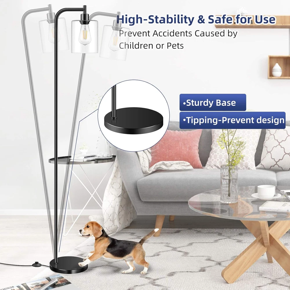 Industrial Floor Lamp with Hanging Glass Shade Black Farmhouse Indoor Pole Light
