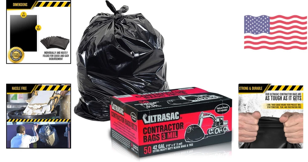 Industrial Garbage Trash Bags - 42 Gallon, 3 MIL Thick, Large Black, 50 Pack ‹ › ‹ › ‹ › ‹ › ‹ › ‹ › ‹ › ‹ › ‹ › Industrial Garbage Trash Bags - 42 Gallon, 3 MIL Thick, Large Black, 50 Pack Features: 3 Mil thick gauge for puncture and tear resistance Value pack of 50 bags at just 50 cents per bag Made in the USA with at least 90% recycled material Neatly packed and dispensed one at a time to prevent waste Benefits: Tough on debris, easy on your wallet Environmentally friendly with recycled material Perfect for construction and commercial use Convenient and cost-effective solution for waste disposal Why choose our Industrial Garbage Trash Bags? When it comes to tough jobs, you need tough trash bags. Our Industrial Garbage Trash Bags are 3 Mil thick, ensuring they can handle any project without punctures or tears. Plus, at just 50 cents per bag, you get the same quality as big brands at a fraction of the cost. Not only are our bags made in the USA with recycled material, but they are also neatly packed and dispensed one at a time to prevent waste. Choose our Industrial Garbage Trash Bags for a reliable, cost-effective, and environmentally friendly solution for your waste disposal needs. Don't settle for flimsy bags that can't handle the job - order your Industrial Garbage Trash Bags today! Shipping Free & Fast Shipping - We offer free shipping to most of the USA with a normal delivery time of 3-7 days. However, due to the current situation, additional delivery time (up to 3 weeks) may be required for some items. Alternative Carriers - We may use alternative carriers (e.g. USPS, FedEx, UPS, etc.) to ensure your package arrives safely and on time. Due to the use of multiple carriers, we are unable to provide a tracking number automatically. Handling Time - Orders are processed and shipped within 1-2 business days of receiving cleared payment. Shipping Restrictions - Shipping to Alaska, Hawaii, Puerto Rico, Guam, and other US territories may incur shipping charges or delivery restrictions. Please contact us before ordering, or your order can be refunded/cancelled. State Restrictions - There may be restrictions based on your state of purchase. For example, certain items may not be shipped to California due to state regulations. Contact for Tracking Updates - If you require tracking updates or have any concerns about the delivery of your order, please feel free to contact us, and we will be happy to assist you. Return 30-Day Hassle-Free Returns - We want you to be completely satisfied with your purchase. If you are not, you can return the item within 30 days of receiving it for a full refund or exchange. Easy Return Process - To start a return, simply contact us and we will provide you with a prepaid return shipping label and detailed instructions. Restocking Fee - There are no restocking fees for returns. However, the buyer is responsible for return shipping costs if the return is not due to a seller's error. Refund Processing Time - Refunds will be processed within 5 business days of receiving the returned item in its original condition. Payment We accept all major credit cards, PayPal, and Apple Pay for your convenience. Your payment information is secure and encrypted to ensure a safe and seamless transaction. Please complete your payment within 3 days of purchase to avoid any delays in shipping. Feedback Your feedback is extremely important to us. We strive to provide the best products and customer service possible. If you are satisfied with your purchase, please take a moment to leave us a positive review. If you have any concerns or issues with your order, please contact us before leaving negative feedback. We are committed to resolving any problems and ensuring your satisfaction. Contact Us If you have any questions or concerns, please feel free to reach out to our customer support team. You can contact us through the eBay messaging system. We are available Monday to Friday, 9:00 am to 5:00 pm EST, and we will do our best to respond to your inquiry within 24 hours. Thank you for supporting our small family business!
