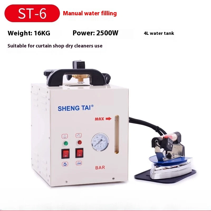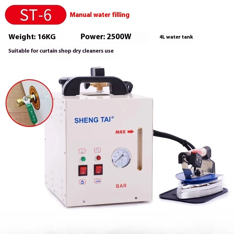 The end of water problems, normal tap water is sufficient for steam generators. Portable steam generator with adjustable steam valve, double safety valve, safety thermostat for water shortage, control light for water shortage, pressure gauge, silicone rest mat, cable whip. Due to its handiness, it can be taken anywhere. The small size ensures that it takes up hardly any space and is easy to use. The steam is ready for use when ironing in just a few minutes. The existing pressure gauge ensures that you can check the steam pressure yourself at any time. The housing is not only well made, but is also protected against rust. The warning lights on the housing ensure safe use of the device. The steel steam boiler, which is specially protected against rust, prevents calcification and prevents problems in this regard from arising in the first place. The ergonomic and hand-friendly workmanship of the iron, which weighs little, makes it possible to work for longer and more comfortably. Thanks to the powerful steam that can be generated continuously, it is even possible to iron clothes while they are still hanging on the hanger. Wrinkle problems are easily solved and are a thing of the past. All of these advantages save you valuable time when ironing and ensure that ironing is not a nuisance but a fun activity and that you get excellent results. With silicone mat and Teflon soleplate for irons