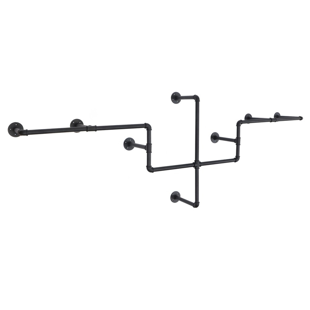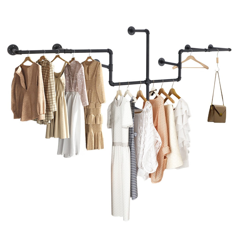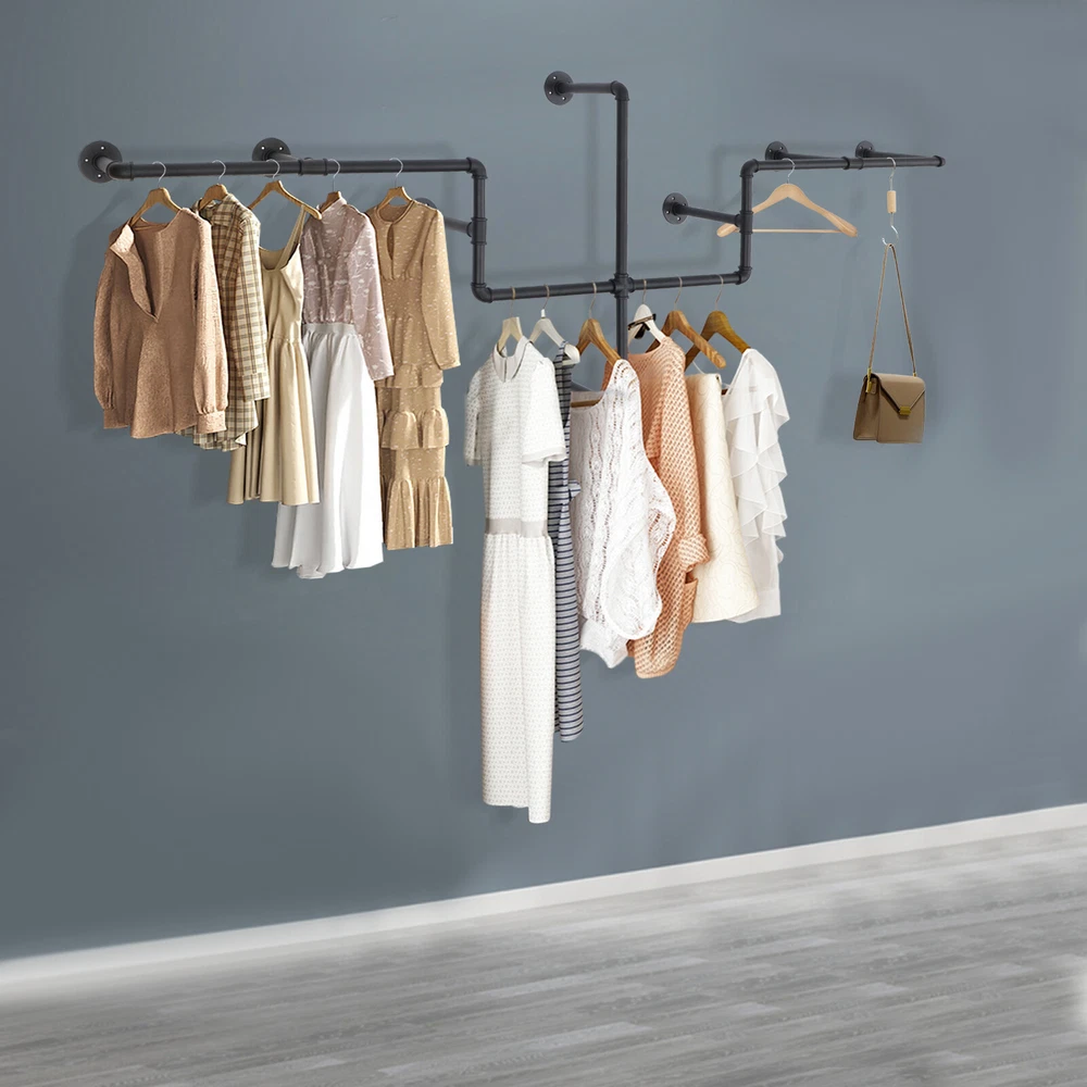 Industrial Pipe Wall Mounted Garment Rack - Clothes Hanging Bar Display Stand