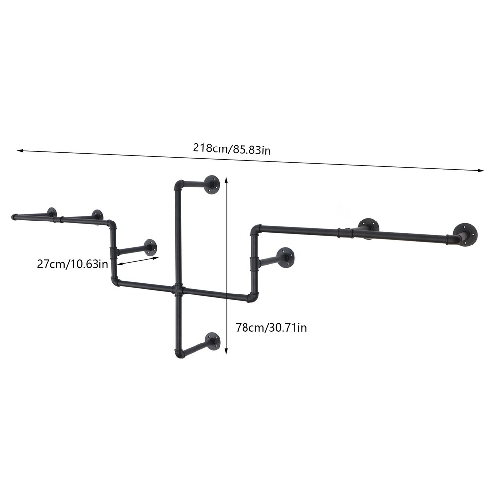 Wall Mounted Garment Rack Industrial Pipe Clothes Hanging Bar Display Stand New Welcome to our store~ Description Are you still struggling with an over-saturated closet? This wall-mounted clothing rack can easily free your closet. It is made of sturdy iron material, ensuring a longer service life. The surface coating process can provide a rust-proof effect. Its unique shape and industrial style will decorate your room very well. It is not only practical but also beautiful, which will be an ideal choice for you. Key Features Space Saving: The clothes rack does not take up any floor space, but makes good use of wall space, which can save a lot of space. Versatile Style: The clothes rack's elegant black color and smooth lines show the unique industrial style. It can be well integrated into a variety of decoration styles. High Load-bearing Capacity : Made of strong and durable iron, the wall-mounted clothes rack has a maximum load-bearing capacity of around 66lbs to meet your daily needs. The rack has a long rod (85.83in) for hanging lots of clothes, which will keep your home clean and organised every time. Meticulous Design: The 10.62in distance between the hanging rod and the wall prevents clothes from touching the wall, and makes it easy to hang up and take down your clothes. Detachable : The clothes rack can easily be taken apart for a second use, as well as being easy for you to store and recycle. Easy to Install: The package contains the basic rack and screws. You can choose a suitable wall to install the rack with screws, which is convenient and fast. Long Service Life: The metal material with zinc plating and high-temperature baking lacquer finish is well protected against oxidation and corrosion to ensure the quality and longevity of the clothes rack. Excellent After-Sales Service: We aim to provide quality products and services. If you have any problems, please feel free to contact us. We will reply and solve the problem for you as soon as possible. Details Iron Tube: The clothes rack is made of high-quality iron tubes with thickened tube walls(0.047in), which are strong and not easily deformed, making the service life longer. High-temperature Baking Tubes: The surface of the clothes rack is treated with a high-temperature baking lacquer finish, which is waterproof and wear-resistant. At the same time, it prevents the iron rod from rusting and prolongs the use time. Stable Flange Base: It uses a four-hole flange base to connect to the wall to expand the contact surface between the base and the wall, making the clothing rack more solid and won't shake. Even hanging thick winter clothes won't fall off easily. Application The clothes rack can be widely used in homes, clothing stores, hotels, laundry rooms, boutiques and studios for storing and hanging clothes. Specification Material: Iron (With Malleable Cast Iron Accessories) Color: Black Style: Industrial Installation: Wall-mounted Surface Treatment Process: Zinc Plating and High-temperature Baking Lacquer Packing Size: 42*30*9cm/16.53*11.81*3.54in Product Size: 218*78*27cm/85.83*30.71*10.63in Tube Wall Thickness: 1.2mm/0.047in Tube Diameter: 2.5cm/0.98in Gross Weight: 7.2kg/15.87lbs Net Weight: 6.5kg/14.33lbs Weight Capacity: 30kg/66lbs Package Included 8* Footbeds 8* Hanging Rods 2* Vertical Rods 8* Support Rods All Accessories for Installation Notes Please choose a sturdy wall for installation Please allow the slight color difference caused by the shooting light and 1-3cm error due to manual measurement, and make sure you do not mind before ordering. Payment Delivery details Terms of sales About us Contact us Payment We accept ebay payment 。 Fees such as import duties, taxes are not included in the item price or shipping costs. These charges are the buyer's responsibility. Delivery details Shipping: 2-9 working days to: USA Terms of sales We maintain high standards of excellence and strive for hundred percent customer satisfaction. Feedback is very important to us. We hope that you contact us immediately before you give neutral or negative feedback, so that we can address your concerns. It is impossible to address issues if we do not know about them! About us Your satis faction is our ultimate goal. We work hard to earn your trust and future business. Our certified technicians have tested each item before shipping. The unit comes with 1 year limited warranty on all manufacturing defects. a) If you receive a defective item, you may return it or ask for a discount. Please contact us within 14 days after you receive the package. b) What you returned must be intact and in its original packaging as re? u. Customer is responsible for shipping costs of the returned item. c) We will cover the cost of shipping back t with the shipping rate indicated in the registration page. We will send you a new unit or refund the full payment you paid. Thank you. Contact us Business Hour Business Hour: Monday To Friday: 8:30 AM to 5:00 PM (Beijing China time) Due to time zones, our reply to your questions may not be immediately. But within above working time, we will reply your email within 24 hours. If it's non-workdays, please kindly be patient and wait till Monday. Please contact us with ebay message. Please feel free to contact us if you have any questions. Monday To Friday: 8:30 AM to 5:00 PM (Beijing China time) Due to time zones, our reply to your questions may not be immediately. But within above working time, we will reply your email within 24 hours. If it's non-workdays, please kindly be patient and wait till Monday. Please contact us with ebay message. Please feel free to contact us if you have any questions. Warranty 5 Years Features Fast shipping, High quality, stable performance, Long service life Custom Bundle No Highlights Nice and Practical, High Quality Packaging, High quality W/ warranty!, Easy installation,Convenient Use,Easy Operation Type Clothing Rack Item Height 27cm Item Length 218cm Item Width 78cm Material Iron Mounting Wal