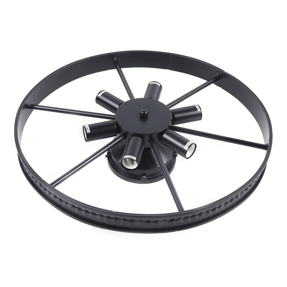 Industrial Wagon Wheel Chandelier Rustic Ceiling Light Fixture for Kitchen Bar Product description: This is a high-quality wrought iron retro ceiling lamp, which uses the design concept of wheels. It has 6 lamp holders to make your house brighter. Features: Category: Semi-recessed ceiling light Voltage: 110v/60Hz Shade material: metal Colour: Black Power per bulb: 40W max Purpose: indoor lighting Shade shape: round Dimensions: Lamp width: 18 inches (46 cm) Bulb information: Bulb type: LED/Incandescent/Fluorescent Lamp base: E12 / E14 Whether to include bulbs: not including bulbs Number of lights: 6 lights Packing size: 52*52*20cm Weight: 3kg The package includes: 1X ceiling light ❤❤❤Welcome to royalfeatured ❤❤❤ Industrial Wagon Wheel Chandelier Rustic Ceiling Light Fixture for Kitchen Bar Product description: This is a high-quality wrought iron retro ceiling lamp, which uses the design concept of wheels. It has 6 lamp holders to make your house brighter. Features: Category: Semi-recessed ceiling light Voltage: 110v/60Hz Shade material: metal Colour: Black Power per bulb: 40W max Purpose: indoor lighting Shade shape: round Dimensions: Lamp width: 18 inches (46 cm) Bulb information: Bulb type: LED/Incandescent/Fluorescent Lamp base: E12 / E14 Whether to include bulbs: not including bulbs Number of lights: 6 lights Packing size: 52*52*20cm Weight: 3kg The package includes: 1X ceiling light Payment Delivery details Terms of sales About us Contact us Payment We accept ebay payment 。 Fees such as import duties, taxes are not included in the item price or shipping costs. These charges are the buyer's responsibility. Delivery details Shipping: 2-9 working days to: USA Terms of sales We maintain high standards of excellence and strive for hundred percent customer satisfaction. Feedback is very important to us. We hope that you contact us immediately before you give neutral or negative feedback, so that we can address your concerns. It is impossible to address issues if we do not know about them! About us Your satis faction is our ultimate goal. We work hard to earn your trust and future business. Our certified technicians have tested each item before shipping. The unit comes with 1 year limited warranty on all manufacturing defects. a) If you receive a defective item, you may return it or ask for a discount. Please contact us within 14 days after you receive the package. b) What you returned must be intact and in its original packaging as re? u. Customer is responsible for shipping costs of the returned item. c) We will cover the cost of shipping back t with the shipping rate indicated in the registration page. We will send you a new unit or refund the full payment you paid. Thank you. Contact us Business Hour Business Hour: Monday To Friday: 8:30 AM to 5:00 PM (Beijing China time) Due to time zones, our reply to your questions may not be immediately. But within above working time, we will reply your email within 24 hours. If it's non-workdays, please kindly be patient and wait till Monday. Please contact us with ebay message. Please feel free to contact us if you have any questions. Monday To Friday: 8:30 AM to 5:00 PM (Beijing China time) Due to time zones, our reply to your questions may not be immediately. But within above working time, we will reply your email within 24 hours. If it's non-workdays, please kindly be patient and wait till Monday. Please contact us with ebay message. Please feel free to contact us if you have any questions.