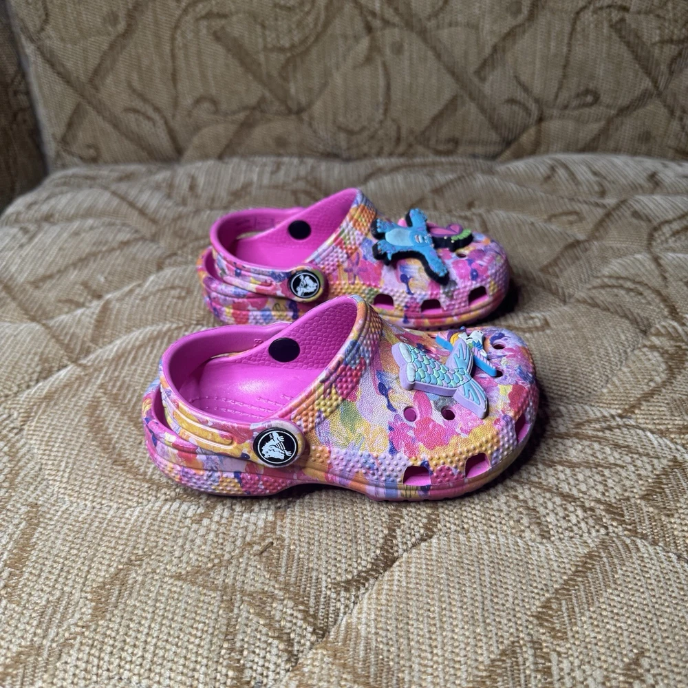 Infant CROCS Classic Hyper Real Pink Multi Color Size C 8 With Jibbitz