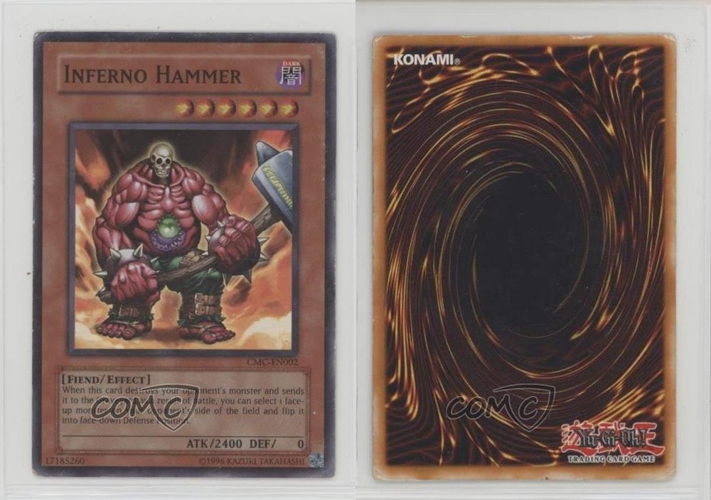 2004 Yu-Gi-Oh! Capsule Monster Coliseum - Playstation 2 Promos #CMC-EN002 Inferno Hammer COMC Item: 187010034 - YuGiOh Card - Featuring Inferno Hammer Search for more: 2004 Yu-Gi-Oh! Capsule Monster Coliseum Search for more: 2004 Yu-Gi-Oh! Capsule Monster Coliseum - Playstation 2 Promos View all of our Listings Auctions Buy It Now About Us Located in the beautiful Pacific Northwest, COMC (Check Out My Cards) is the world's largest consignment service for trading card singles. More than 10,000 people have used our consignment service to list over 50 million trading cards. Find out how we can help you consign your items on eBay by contacting us through eBay messaging. COMC -- "The Safe & Easy Way to Buy & Sell" Raw Condition for Modern Cards Unless otherwise noted, raw modern cards are listed in Near Mint-Mint condition or better. A NM-MT card appears to be Mint at first glance, but upon closer inspection, may exhibit some of the following: minor print defects (e.g. roller marks, print line, dimple), minor scratches, slight edge wear, and slight corner wear. Centering is clearly visible in the images provided and does not factor into our condition assessment. Raw Condition for Vintage Cards Unless otherwise noted, raw vintage cards are listed in Excellent condition or better. An EX card may exhibit some of the following: minor rounding of corners, surface wear, print defects, light scratches, and slight edge wear/chipping. Centering is clearly visible in the images provided and does not factor into our condition assessment. Domestic Shipping Combined shipping for multiple items is available. To receive combined shipping, please ensure all desired items are in your eBay shopping cart before proceeding to checkout. eBay limits orders to 40 items per order. We automatically combine multiple orders placed on the same day. If you place multiple orders on the same day, please contact us to request a refund of applicable shipping costs. Signature confirmation may be required on invoices over $400. All cards are protected and shipped securely. International Shipping COMC offers eBay's International Shipping (EIS) for international orders under $2,500* (see country exceptions below). All duties and import fees are paid at checkout; in the rare event that there are additional import fees upon delivery, these are borne by the buyer. EIS packages route through a shipping hub in Erlanger, KY before shipping to their final destination. Please note that EIS does not allow for combined shipments. The shipping rates are determined by eBay and cannot be adjusted. *Maximum sale price exceptions: Colombia, Kuwait ($2,000); Taiwan ($1,539); Chile, Costa Rica, Guatemala, Honduras, Trinidad and Tobago ($1,000); Antigua and Barbuda, Aruba, Belize, Dominica, Grenada, Philippines, Saint Kitts and Nevis, Saint Lucia, Montserrat, Turks and Caicos Islands ($500); Dominican Republic, El Salvador ($200). Please request a shipping quote through eBay messaging for orders that exceed the maximum sale price supported by eBay's International Shipping. You will be responsible for all duties and import fees for international orders shipped outside the EIS. All cards are protected and shipped securely. Payment COMC does not accept offers on our cards through our eBay storefront. COMC utilizes eBay’s managed payments system. If you are experiencing difficulties making a payment, please contact eBay for assistance. Return Policy Returns are only accepted on the rare occasion the item is not as described. If you are making a return, please initiate the return process through eBay so a mailing label can be provided for you. Prior to listing, our expert team carefully assessed this item to represent it accurately. Please review the description and high-definition images prior to purchasing to ensure this item meets your satisfaction. We welcome you to contact us if you have further questions about this item. Trust and Integrity COMC carefully assesses each item consigned to us to prevent fraudulent items from entering the marketplace. If you believe an item offered on COMC may be fraudulent, please contact us with details so we can investigate the issue. Items we determine are outside our supported items policy may be removed. Last Modified: 6/10/2025 12:14:10 PM PDT
