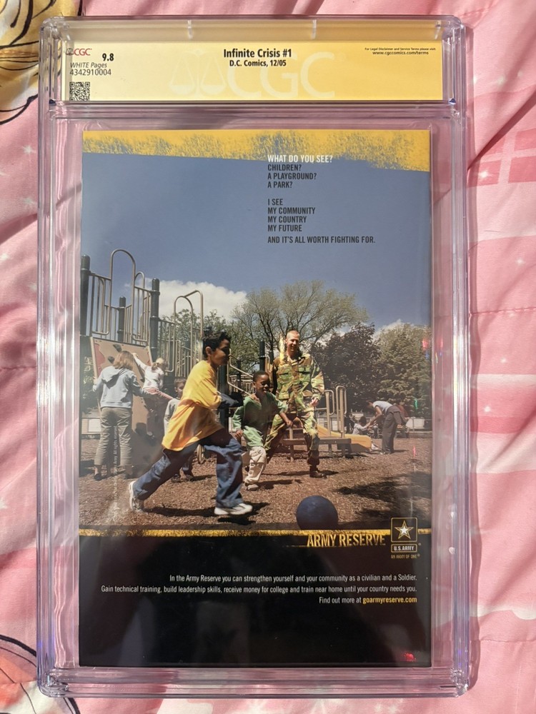 The product is a highly collectible comic book featuring Wonder Woman on the cover, with a CGC Signature Series 9.8 grade. This first printing from December 2005 is signed by legendary artist Jim Lee, making it a valuable addition to any comic book enthusiast's collection. The image showcases the Justice League of America superhero team in the vibrant colors of the DC Universe, reflecting the style of the modern age of comic books. This limited edition 1st edition is authenticated by Certified Guaranty Company (CGC) and is a must-have for fans of the genre.