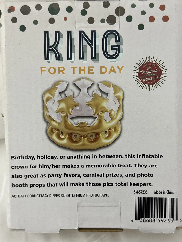 King For The Day Inflatable Crown Birthday Party Prize. Condition is New. Shipped with USPS Ground Advantage.