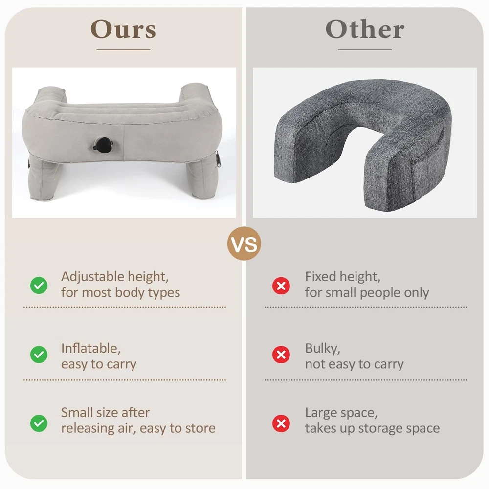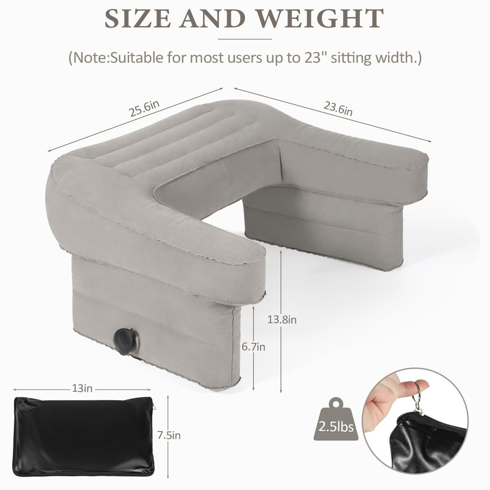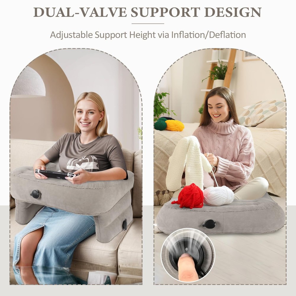 Why choose our gaming lap pillow?Our tv pillow is an oversized pillow with armrests that provides comfortable support for your shoulders, neck and lower back while you read, work or play games. It can be used on the couch, bed or floor. Made of skin-friendly pvc flocked fabric that is waterproof and easy to clean, the reading pillow for lap is not only lightweight and compact, but also easy to fold and carry outdoors without worrying about storage space. It is sized to fit most body types including teens, adults, pregnant women and seniors, making it one of the perfect thoughtful gifts suitable for gifting. ✅ ERGONOMIC DESIGN-The tilted armrest of the lap pillow desk, can improves poor reading posture, protects eyesight, reduces pressure on shoulder, neck and lumbar muscles, and makes you more relaxed and comfortable when reading or working. ✅ADJUSTABLE & FOLDABLE - This 2-in-1 inflatable reading pillow is also its own storage bag! It inflates quickly, adjusts to your perfect height by deflating, and folds down small. At just 2.5 lbs, it’s lightweight, portable, and a total space-saver. ✅SKIN-FRIENDLY MATERIAL-This crochet pillow is made of PVC Flocking fabric, which is comfortable to touch and waterproof, easy to clean, just wipe it with a damp rag. In addition, to ensure the durability of the product, the seams have been reinforced, and you can press the edges with soft fabric to make them smoother. ✅VERSATILE & PORTABLE - Use it as a bed reading pillow, back rest pillow, or gaming support. Perfect for work, play, or knitting—its collapsible design makes it easy to take on camping trips or business trips. ✅THOUGHTFUL GIFT- This reading pillow for lap is ideal for teens, adults, seniors, and pregnant women. Designed to fit most body types, it’s both comfortable and practical. For the best experience, check our size guide carefully and avoid placing liquids or fragile items on it. ✅Our products undergo strict quality testing to ensure safety and comfort. If you encounter any problems during the use, please feel free to contact us, we will be happy to serve you!