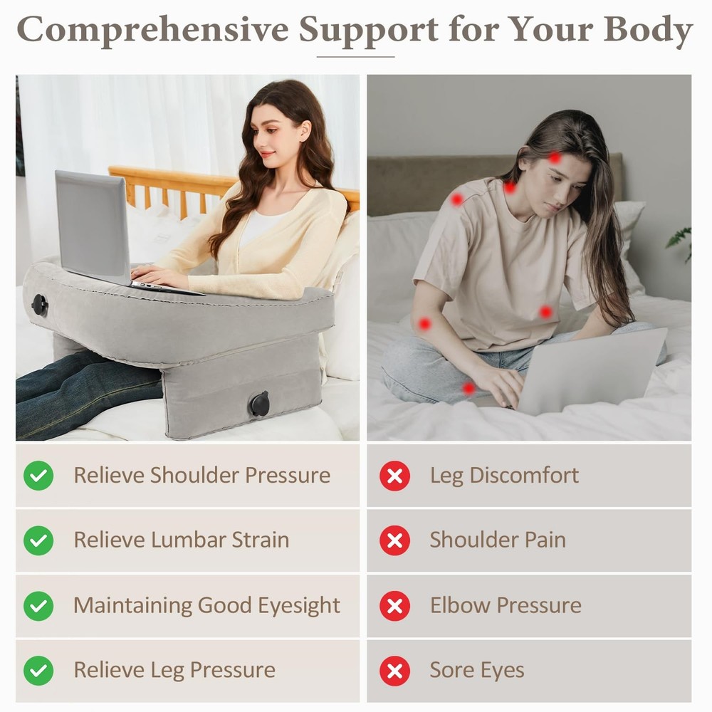 Inflatable Lap Desk Pillow for Gaming Reading Working on Sofa Couch or Camping