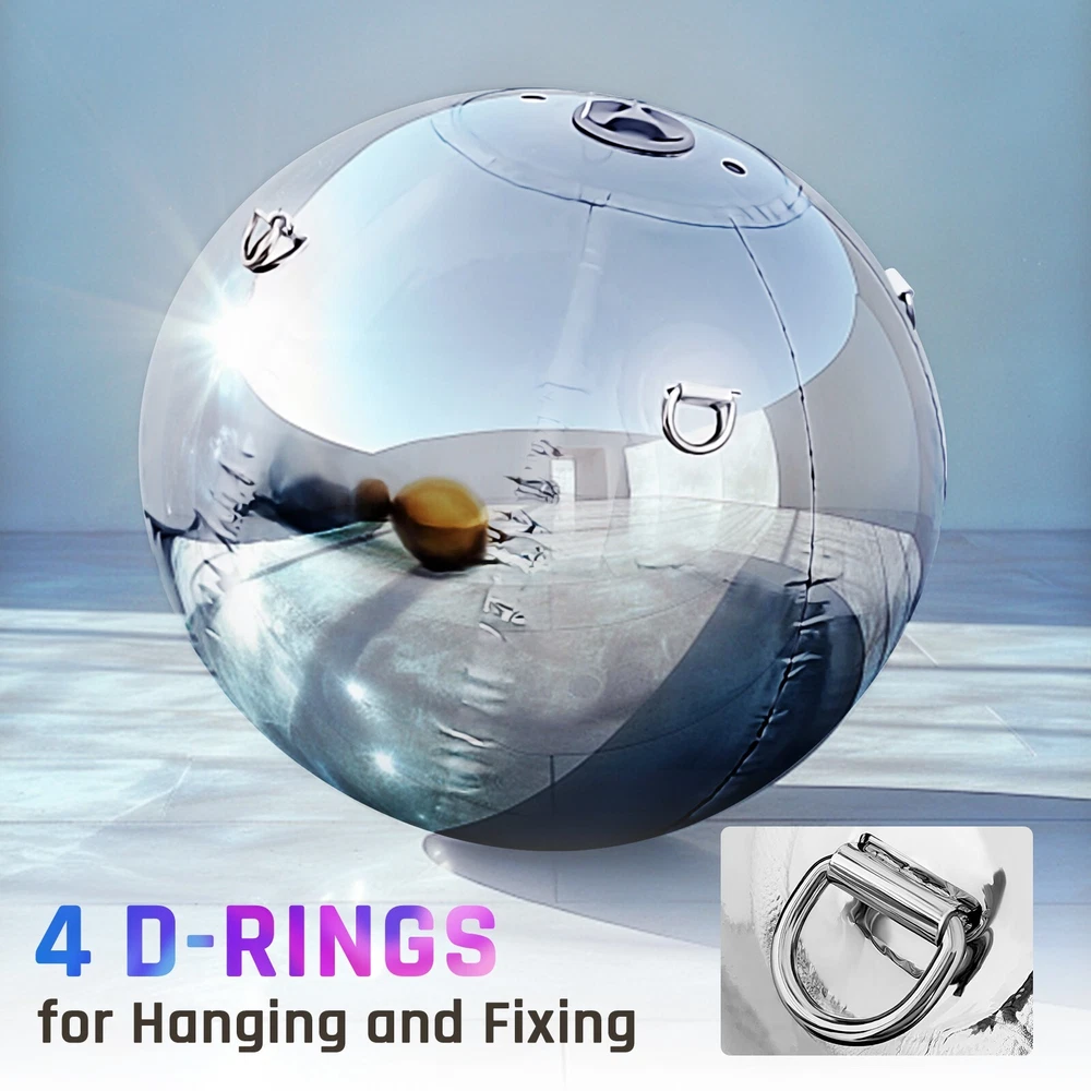 Product Description Giant Inflatable Mirror Ball Airtight Big Shiny Balls Large Hanging&Standing PVC Sealed Mirror Balloon! 【Chic Design for Unforgettable Events】Our inflatable disco Mirror Balls injects a touch of chic passion into your events, creating an extraordinary venue for birthdays, gatherings, music festivals, weddings, photo booth companies, exhibitions and Christmas festival Party. Show Details Dimensions Display Music Festival Wedding Holiday Celebration Business Events Outdoor Party Product details Highly Reflective Mirror Material Made of high quality double-layer PVC material, the surface has been specially treated with extremely high reflectivity to create a gorgeous mirror effect, suitable for any high-end event occasions. Rapid Inflation Purchase a separate high efficiency 500W electric air pump, it only takes a few minutes to fill up. Easy to use, allowing you to set up the perfect scene in no time. Safe and Secure 4 metal D-rings, either hanging or fixed anywhere on the floor, prevent accidental movement. Features & Details 【Buy More Balls, Get Free Pumps】One air pump is included with every order of five inflatable mirror balls. Two air pumps for every ten balls to ensure easy inflation. 【Double PVC Mirror Ball】Combines durable 0.4mm PVC layer and 0.3mm laser reflective film to ensure long ball life and eye-catching reflective effect.We choose PVC material, non-toxic and odorless, harmless to human body, in line with environmental standards, you can rest assured that you can use it. Condition. 【Easy to Inflate, Disassemble & Store】Easy to inflate by turning on the air pump, airtight design allows for easy removal of the air pump after inflation. The sphere is lightweight and easy to fold, saving storage space. 【Suitable for Hanging or Ground Use】Each ball is equipped with a D-ring for easy hanging, can be used on the ground or even in water, suitable for indoor and outdoor occasions. 【Suitable for any Occasion】Made of top grade PVC, safe and reliable, suitable for baby showers, birthdays, weddings, parties, nightclubs, stage decorations and other various occasions. 【Q&A】 How do I clean the mirror ball? Simply wipe the surface gently with a soft cloth and a mild detergent. Can the mirror ball be used outdoors? Yes, our mirror ball is made of durable material and is suitable for outdoor use, but we recommend storing it in extreme weather conditions. How do I inflate and deflate? The Mirror Ball is equipped with a highly efficient inflation valve that allows you to quickly inflate it using an ordinary air pump. Deflating is easily done by simply opening the valve. How long does it take to fill up? Customers can purchase a separate electric air pump to fill the ball in minutes, very convenient and quick. SHIPPING ABOUT US PAYMENT RETURNS CONTACT WARRANTY We are a team of expert researchers who like to go down the rabbit hole on the products that catch our attention. We hope to bring a new experience to users and enjoy the achievements brought by technology. We accept PayPal payment,PayPal Credit,Credit card or debit card and so on. Payment should be completed within 4 (Four) days of auction closing. Or unpaid dispute will be filed for closing auction. We will leave a positive feedback immediately after payment is received. We appreciate a positive feedback as much as you do. If for some reason there is any issue with the purchase, please contact us prior to leaving feedback, we will be glad to work together and provide a satisfying solution. Fast Shipping Guaranteed: We strive to deliver your order promptly. Once payment is received, we will ship your order within 24 hours . We dispatch from the nearest warehouse based on your delivery address, ensuring efficient delivery. In most cases, you can expect your package to arrive at any address across the United States within approximately one week (excluding unforeseen circumstances beyond our control). California Warehouse: City of Industry, CA New Jersey Warehouse : Perth Amboy, NJ All of our items are backed with a 30-day return policy. We ensure all our items are new and in excellent condition prior to shipping. In case you receive the item that is not to the standards above, please contact us via e-Bay messages. All returns must be in new original condition as received and should be shipped with delivery confirmation Please note that all returns must be pre-approved by us. Unauthorized returns will not be accepted. If you need to return, please check twice to confirm the item not work and contact our customer service representative, let us know the detailed problem and send us some pictures for confirmation. We ONLY accept returns with original package. Please make sure that item has NO man-made sabotage. Used items will not be accepted for return. Always Here for You: 24/7 Customer Support!: Reach out to us anytime via email for any queries. We've got you covered with our phone service too. Leave us your number, and we'll call you back promptly. 12-24 hours This item comes with 12 months Warranty from the date of customers purchased it. Special circumstances will be listed clearly in the listing. If your item has been damaged in transit or become faulty in warranty period, please email us with pictures or video to show the problem. Please do check everything carefully after you received the parcel, any the damage except DOA (Dead-On-Arrival) would not be covered if it's your fault. Replacement products are provided with the same warranty as the returned products. Giant Inflatable Mirror Ball Airtight Big Shiny Balls Large Hanging&Standing PVC Sealed Mirror Balloon! 【Chic Design for Unforgettable Events】Our inflatable disco Mirror Balls injects a touch of chic passion into your events, creating an extraordinary venue for birthdays, gatherings, music festivals, weddings, photo booth companies, exhibitions and Christmas festival Party. Show Details Dimensions Display Music Festival Wedding 