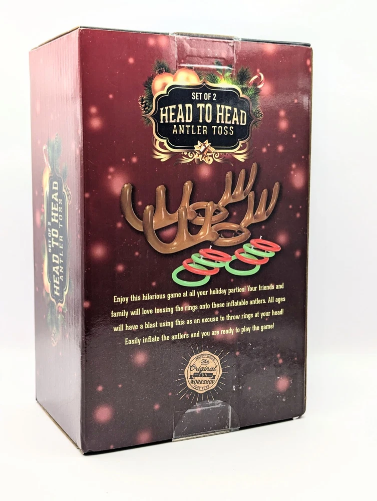 Get ready to add some festive fun to your next party with this Inflatable Reindeer Antler Hat Ring Toss Game! Perfect for Christmas, birthday, or any occasion, this party game is sure to be a hit. The game features a unique Christmas antler design that is sure to impress your guests. Made with high-quality materials, this inflatable toy is durable and long-lasting. With its animal print style and brown color, it is sure to fit in with any party theme. The game is easy to set up and comes with a ring toss game that is perfect for kids and adults alike. Get ready to add some holiday cheer to your party with this fun and exciting inflatable game!