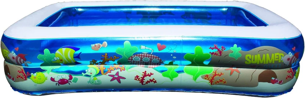 Inflatable Swimming Pool Kiddie Pool, Big Fun Summer School LEARN-TO-SWIM products are designed with young new swimmers in-mind from pre-swimmers getting comfortable in the water, beginners building water confidence, and intermediate swimmers developing their swim skills Large classic rectangle shape pool measures over 6-feet and features an underwater swim school design on "ocean" blue vinyl; holds a water capacity of 132 gallons Inflated pool bottom for comfort sitting and play; inflated perimeter side walls are extra thick and measure approximately 16-inches high and 14-inches wide - SUPER STURDY Easily holds up to four children, the elevated sides are great for little ones to lean against or sit on top; recommended ages 2+ and great pool for kids, adults and family Integrated water plug is located at the bottom of the pool for quick water release when needed; features easy-to-inflate / deflate Boston valve For pre-swimmers who want to splash about and get comfortable in the water, this classic-shaped inflatable backyard swimming pool screams big summer fun and easily holds up to four kids comfortably. The perimeter side walls are extra wide and great for sitting along or leaning against while cooling off in the pool. The inflatable floor makes it comfy for all-day pool play and sitting and the integrated drain plug makes it easy to remove the water for end-of-the-season storage. It's easy to inflate and deflate because it features a Boston Valve - perfect! Measuring Over 6-feet, it's the Goldie Lox size...not too small and not too big...IT'S JUST RIGHT! Perfect summer pool for kids, adults and families. Item model number 81612 Warranty Description 1 year against manufacturer defects. Capacity 132 Gallons Assembly Required No Color Multicolor Special Feature Inflatable, Portable, Lightweight, Foldable, Drain Hole Material Vinyl Country of Origin China Occupancy 4 person Item Weight 7.63 pounds Batteries required No Shape Rectangular Frame Material Vinyl Age Range (Description) Kid Included Components Pool Target Audience Adults,Swimmers Product Dimensions 14"L x 14"W x 16"H 14.0 "h x 14.0 "h x 16.0 "h. Weight: 7.63 lb Shipping from the USA All of our products are shipped from the USA, ensuring quick delivery to your destination. Payment We offer the following payment methods: PayPal, credit card, bank transfer, and eBay's secure payment system. Free Shipping & Free Returns Shipping within the USA is FREE. Additionally, any return is absolutely free for you. Risk-Free Purchase You have the option to return an item within 30 days without any justification. We cover the return shipping costs! Fast Shipping We ship immediately upon receipt of payment. Generally, the package is delivered within 2-3 days in the USA. If it takes longer, we will contact you. Quality and Costs Made in Europe, USA, China No customs fees or additional charges Total satisfaction guarantee Invoice with declared VAT available upon request in .pdf format Feedback Your feedback is very important to us. After you pay for your purchase, you will automatically receive positive feedback from us.