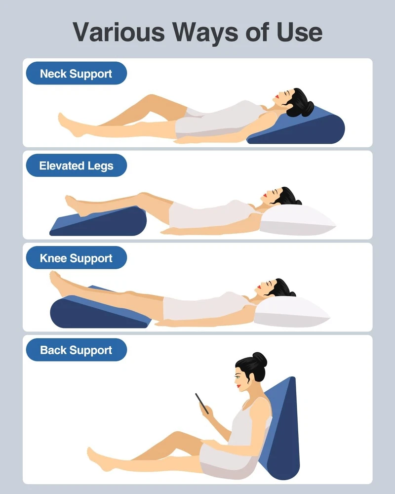 Inflatable Wedge Pillow for Sleep Apnea, Travel Wedge Pillow for Back Pain , Knee Leg Elevation Pillow, Inflatable Bed Wedge Pillow for Sleeping, Back Support Pillow for Sitting Up ❤【Adjust the Firmness】: Our inflatable wedge pillow uses the Button Valve design, effectively reducing quality issues of air leakage, and its inflatable design allows you to adjust the firmness to your desired level, this ensures that you get the perfect amount of support and comfort for your specific needs ❤【Comfort & Durable】: The outer material is made of Milk Silk Fabric, more skin-friendly, soft and comfortable than PVC flocking, no friction noise, no peculiar smell, it can be cleaned easily with a damp cloth. Dot matrix exterior design can prevent the body from slipping off the bed wedge pillow while sleeping ❤【Perfect for Travel】: It is only 7x4inch, 0.88lb when folded in the carry bag, ultra small and lightweight, easy to put into your backpack or suitcase, the perfect inflatable wedge pillow for travel, a good trip starts with quality sleep ❤【Air Pump Inflation】: Suggest using an air pump (not included) to inflate this travel wedge pillow, it will be quickly inflated about 2 minutes, due to the Button Air Valve design, it is difficult to inflate by blowing with your mouth ❤【Benefits】: The wedge pillow for sleeping provides support for the back and neck, ideal for those who suffer from back or neck pain, as well as for post-surgery recovery or during pregnancy. It provides a natural solution for chronic heartburn, acid reflux and snoring, helpful to increase blood flow, promote breathing and improving sleep quality ❤【Multipurpose】: Not only for back support while lying down or sitting, but also as a leg elevation pillow, knee wedge pillow. Its unique shape makes it perfect for reading, watching TV, or lounging in couch, the great gift for people who prefer to sleep in an elevated position