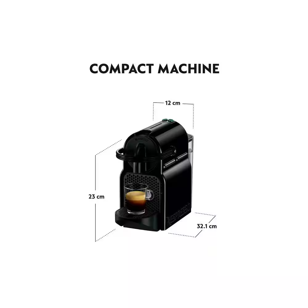 Fast Shipping On All Items 30 Days Money Guarantee Customer Support Excellent Service 100% Satisfaction Satisfaction Guaranteed Inissia Single Cup Black Espresso Machine and Coffee Maker with One Touch Operation Specification Appliance Series Not Applicable Appliance Type Coffee Maker Brew Strength Normal Capacity (fl oz) 24 Coffee Appliance Type Single Serve Coffee Filter Type Capsule Color/Finish Black Color/Finish Family Black Commercial/Residential Residential Features Automatic Shut-Off,Detachable Water Tank,Removable Drip/Crumb Tray Includes Drip Tray Material Plastic Number of Cups 1 Product Weight (lb) 7.5 lb Returnable 90-Day Small Appliances Color Family Black Small Electric Product Type Single Serve Coffee Maker Wattage (W) 1200 W Certifications and Listings UL Listed Manufacturer Warranty 1 Year Limited Warranty Safety Listing UL Product Depth (in) 4.7 in Product Height (in) 9.0 in Product Width (in) 12.6 in 12.6 inches x 4.7 inches x 9.0 inches. Weight: 7.5 lb Item Description With a tiny footprint, compact, lightweight and equipped with an ergonomic chandle, the Nespresso Inissia Espresso Machine by De'Longhi is a smart little machine to make your life easier and fit perfectly into any interior design. Simple to use, it offers an impeccable barista-style coffee every time, thanks to its simple, one-touch operation and patented extraction system which delivers up to 19 bar pressure. A fast heat-up time means the water reaches the ideal temperature in just 25 seconds, while a folding drip tray for taller recipe glasses and an energy saving mode that automatically switches the machine off after 9 minutes make your life easier. Each machine includes a welcome set with 16 Nespresso capsules containing individual aromas. About us We offer the best prices around on high quality products. Our E-store includes media such as books, movies, music and games while offering electronics, toys, sporting apparel, clothing, tools, general home, garden items and more. Shipping We are always working hard to ensure your package arrives as soon as possible. Please understand that some factors like weather, high postal traffic, and the performance of shipping companies are outside of our control. We offer free shipping to the lower 48 states and ship within 2-3 business days of payment, usually sooner. We do not accept P.O. Boxes. Please provide a physical address. For shipping outside of the continental USA, we only use eBay's Global Shipping Program.The item is shipped to KY and then sent to the rest of the world. International customers are responsible for all duties and taxes. Continue to check out to calculate costs for shipping the item to your country. Messages regarding eBay's Global Shipping Program MUST be directed at eBay EXCLUSIVELY. Returns We offer a 30-Day Return Policy on items in which you are not completely satisfied with. You have the option of a full-refund or an exchange of the item. No returns are available on items shipped outside of the USA Satisfaction We try over very best to make sure every customer is completely satisfied. If there's a problem, message us! We're happy to help. Payment Options Shop With Confidence
