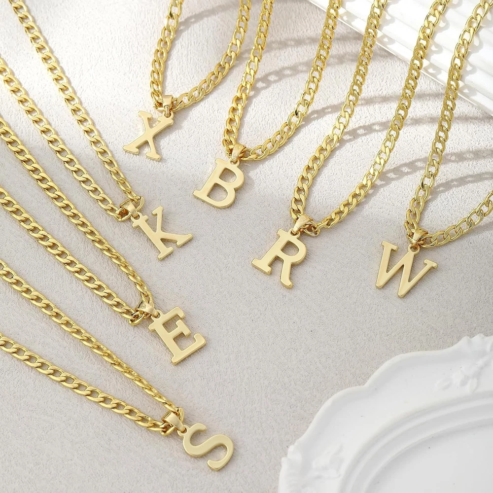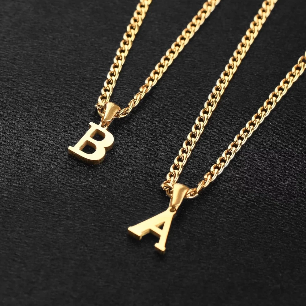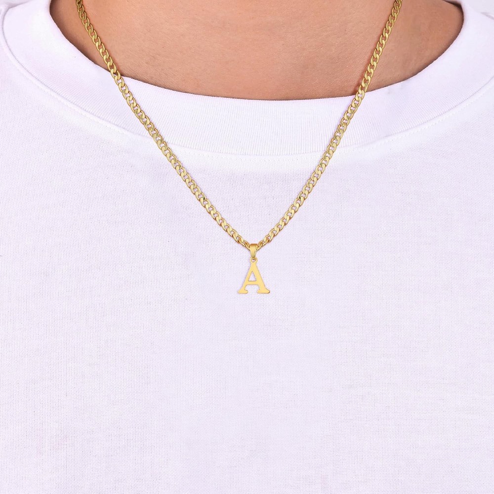 Initial A-Z Letter Pendant Necklace for Men 18K Gold Plated Capital A