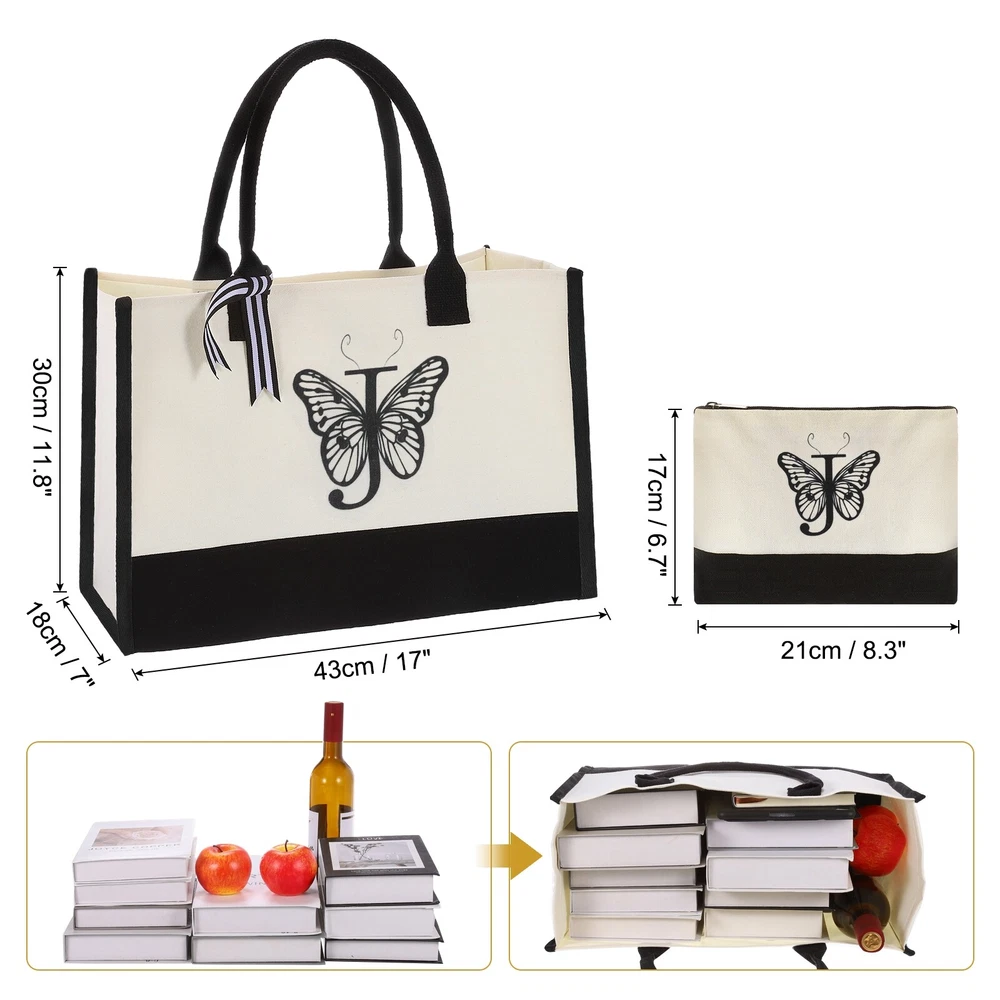 Document Large Capacity Tote Bag: You will receive a personalized canvas tote bag with the letter J and a cosmetic bag. The tote bag is 43 x 18 x 30 cm / 17 x 7 x 11.8 Inch (L*W*H), which is spacious enough to be used as a grocery bag, shopping bag, beach bag and travel tote, and can accommodate laptops, clothes, cosmetics, books and other daily necessities.Easy to Carry: The tote bag is lightweight and equipped with sturdy handles that can be comfortably clamped on the shoulder, allowing easy access to your water bottle, sunglasses, umbrella, etc. In addition, the cosmetic bag is 21 x 7 x 17 cm / 8.3 x 2.72 x 6.7 inches(L*W*H), can carry toiletries, wallets, card holders, keys and other valuables at any time when traveling or on business trips. It can also be folded and stored in the pocket when not in use.Sturdy and Durable:The reusable shopping bags are of suitable size, made of good-quality thick canvas material, with PVC coated moisture-proof lining inside, and carefully sewn with dense stitching, ensuring that the bags remain intact and sturdy even under heavy loads, not easy to break, and can be reused for a long time.Stylish and Personalized:These bags are personalized with letters and exquisite patterns, and also come with a ribbon bow, which fits all your dressing styles and adds beauty to you. Our stylish bags for women are made of friendly materials and are easy to hand wash to clean. These bags are enough to meet most of your daily needs, and are also perfect to be used as gift bags during large events, festivals or parties.Personalized Gifts for Women: Reusable beach tote bag can be a good gift for teachers, ladies, girlfriend, wife, mother, and sister, such as a wedding gift, birthday gift, Thank you gift, Christmas gift and so on. Initial J Canvas Tote Bag with Makeup Bag, Reusable Beach Tote Bag Large Capacity Tote Bag: You will receive a personalized canvas tote bag with the letter J and a cosmetic bag. The tote bag is 43 x 18 x 30 cm / 17 x 7 x 11.8 Inch (L*W*H), which is spacious enough to be used as a grocery bag, shopping bag, beach bag and travel tote, and can accommodate laptops, clothes, cosmetics, books and other daily necessities. Easy to Carry: The tote bag is lightweight and equipped with sturdy handles that can be comfortably clamped on the shoulder, allowing easy access to your water bottle, sunglasses, umbrella, etc. In addition, the cosmetic bag is 21 x 7 x 17 cm / 8.3 x 2.72 x 6.7 inches(L*W*H), can carry toiletries, wallets, card holders, keys and other valuables at any time when traveling or on business trips. It can also be folded and stored in the pocket when not in use. Sturdy and Durable: The reusable shopping bags are of suitable size, made of good-quality thick canvas material, with PVC coated moisture-proof lining inside, and carefully sewn with dense stitching, ensuring that the bags remain intact and sturdy even under heavy loads, not easy to break, and can be reused for a long time. Stylish and Personalized: These bags are personalized with letters and exquisite patterns, and also come with a ribbon bow, which fits all your dressing styles and adds beauty to you. Our stylish bags for women are made of friendly materials and are easy to hand wash to clean. These bags are enough to meet most of your daily needs, and are also perfect to be used as gift bags during large events, festivals or parties. Personalized Gifts for Women: Reusable beach tote bag can be a good gift for teachers, ladies, girlfriend, wife, mother, and sister, such as a wedding gift, birthday gift, Thank you gift, Christmas gift and so on. Hot Item Payment 1.We accept eBay payment . 2.Payment must be received within 7 business days of auction closing. Shipping 1.We ship to your eBay or Paypal address. Please make sure your eBay and Paypal address is correct before you pay. 2.Items will be shipped within 1-3 business day when we received payment. 3.Delivery time depends on destination and other factors. Description Policy Initial J Canvas Tote Bag with Makeup Bag, Reusable Beach Tote Bag Large Capacity Tote Bag: You will receive a personalized canvas tote bag with the letter J and a cosmetic bag. The tote bag is 43 x 18 x 30 cm / 17 x 7 x 11.8 Inch (L*W*H), which is spacious enough to be used as a grocery bag, shopping bag, beach bag and travel tote, and can accommodate laptops, clothes, cosmetics, books and other daily necessities. Easy to Carry: The tote bag is lightweight and equipped with sturdy handles that can be comfortably clamped on the shoulder, allowing easy access to your water bottle, sunglasses, umbrella, etc. In addition, the cosmetic bag is 21 x 7 x 17 cm / 8.3 x 2.72 x 6.7 inches(L*W*H), can carry toiletries, wallets, card holders, keys and other valuables at any time when traveling or on business trips. It can also be folded and stored in the pocket when not in use. Sturdy and Durable: The reusable shopping bags are of suitable size, made of good-quality thick canvas material, with PVC coated moisture-proof lining inside, and carefully sewn with dense stitching, ensuring that the bags remain intact and sturdy even under heavy loads, not easy to break, and can be reused for a long time. Stylish and Personalized: These bags are personalized with letters and exquisite patterns, and also come with a ribbon bow, which fits all your dressing styles and adds beauty to you. Our stylish bags for women are made of friendly materials and are easy to hand wash to clean. These bags are enough to meet most of your daily needs, and are also perfect to be used as gift bags during large events, festivals or parties. Personalized Gifts for Women: Reusable beach tote bag can be a good gift for teachers, ladies, girlfriend, wife, mother, and sister, such as a wedding gift, birthday gift, Thank you gift, Christmas gift and so on. Hot Item Payment 1.We accept eBay payment . 2.Payment must be received within 7 business days of auction closing. Shipping 1.We ship to your eBay or Pay