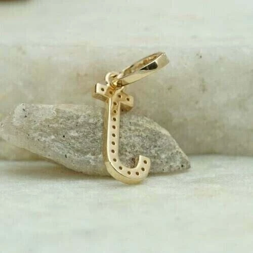 Initial J Letter Pendant 14k Yellow Gold Plated 0.80 Ct Round Moissanite