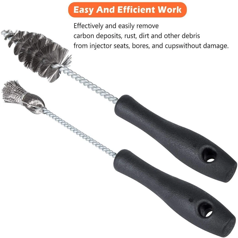 Great Compatibility: Fit for Ford 4.5L LCF 6.0L 6.4L 6.7L 7.3L Powerstroke For Caterpillar 3126 C7 C9 For Navistar T444E DT466 VT365 VT275 For MaxxForce 5/7/DT/9/10/N9/N10 For GM | For Chevrolet 6.6L For Dodge Cummins 5.9L 6.7L For John Deere 4.5L 6.8L 8.1L 9.0L HPCR For Isuzu 4HK1 6HK1 HPCR. Superior Quality: Premium grade wear-resistant stainless steel, durability, anti-corrosion and never rust. Comfortable ABS plastic handle to keep stable and safe. Provides a much longer service life. Upgrade Design: Removing carbon deposits, rust, dirt and other debris from injector seats, bores, and cups without damage. Surfaces are cleaned and polished to insure good seating and sealing. Make the job easier to save your time and money. Special Features: Includes 1–Stainless Steel Spiral Tube Brush and 1–Stainless Steel Flat Bottom Brush. This complete injector brush kit should be a necessity for anyone pulling and swapping injectors. 100% Satisfaction Guarantee: If you're not 100% satisfied with our brush, simply return it for a full refund in 30 days. Support 12 months’ Warranty. Professional & Sincere Service allows you to take no risks to purchase! Package includes: 1 Injector Sleeve Cup/Seat/Bore Cleaning Brush Kit
