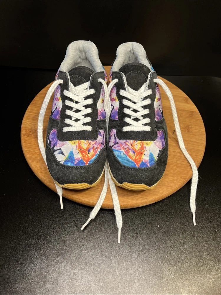 Elevate your sneaker game with these colorful Inkkas Caladium joggers. These low top sneakers feature a lace-up closure and a floral motif pattern that will make any outfit pop. The fabric upper material and lining provide a comfortable and lightweight feel, while the foam insole and rubber outsole offer cushioning and support. These unisex sneakers are perfect for any occasion, whether it's for activewear, casual wear, or even for sports such as walking, tennis, or running. The suede trim and floral pattern make these shoes stand out from the rest.
